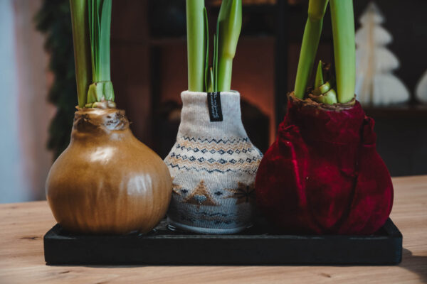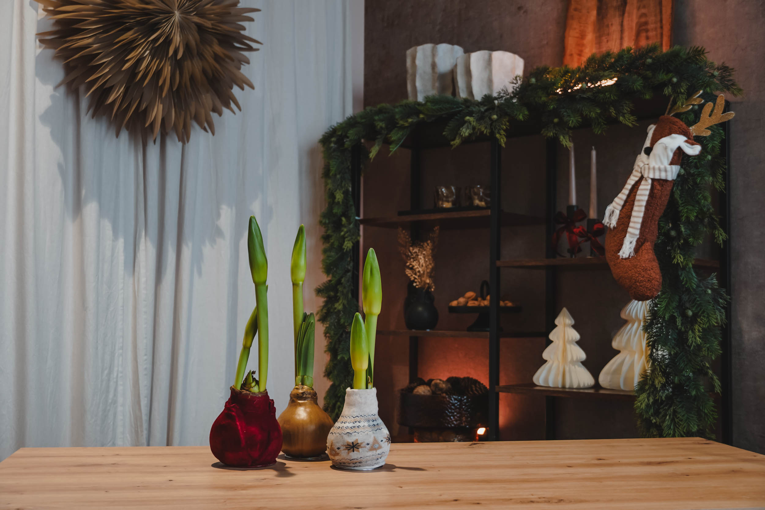 Ob einzeln in einer eleganten Glasvase, in einem dekorativen Topf oder als Teil eines festlichen Arrangements – die Amaryllis ist ein echtes Deko-Wunder. Besonders in der Adventszeit sorgt sie für eine stimmungsvolle Atmosphäre und lässt sich wunderbar mit Eukalyptus, Tannenzweigen oder goldenen Akzenten kombinieren.