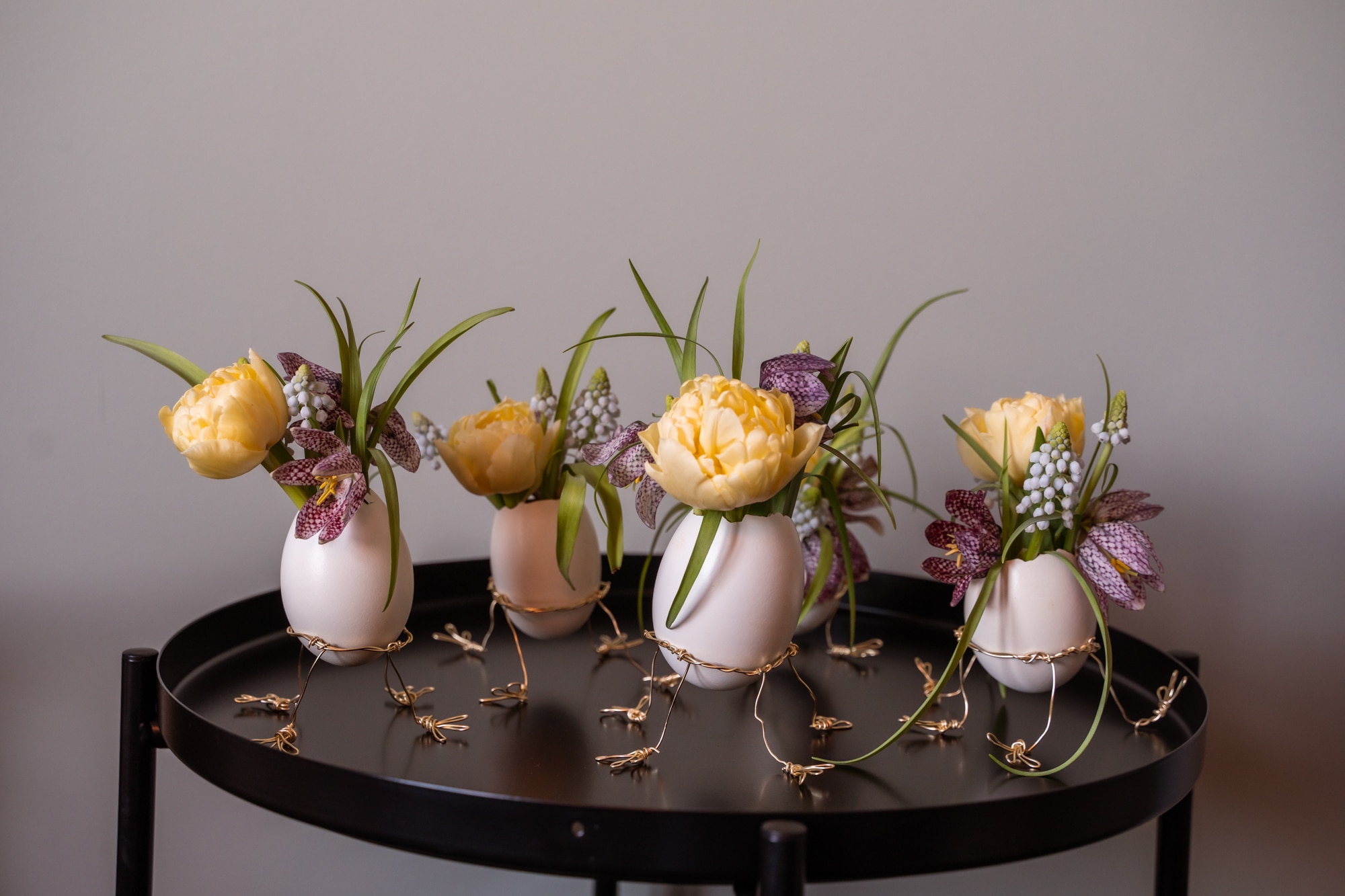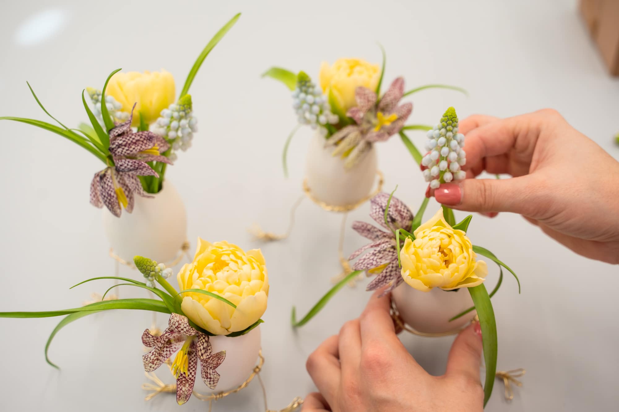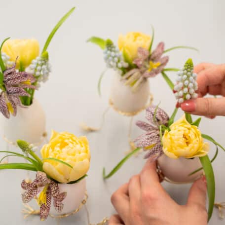 Fülle die Eier mit Wasser und stelle Blumen ein.