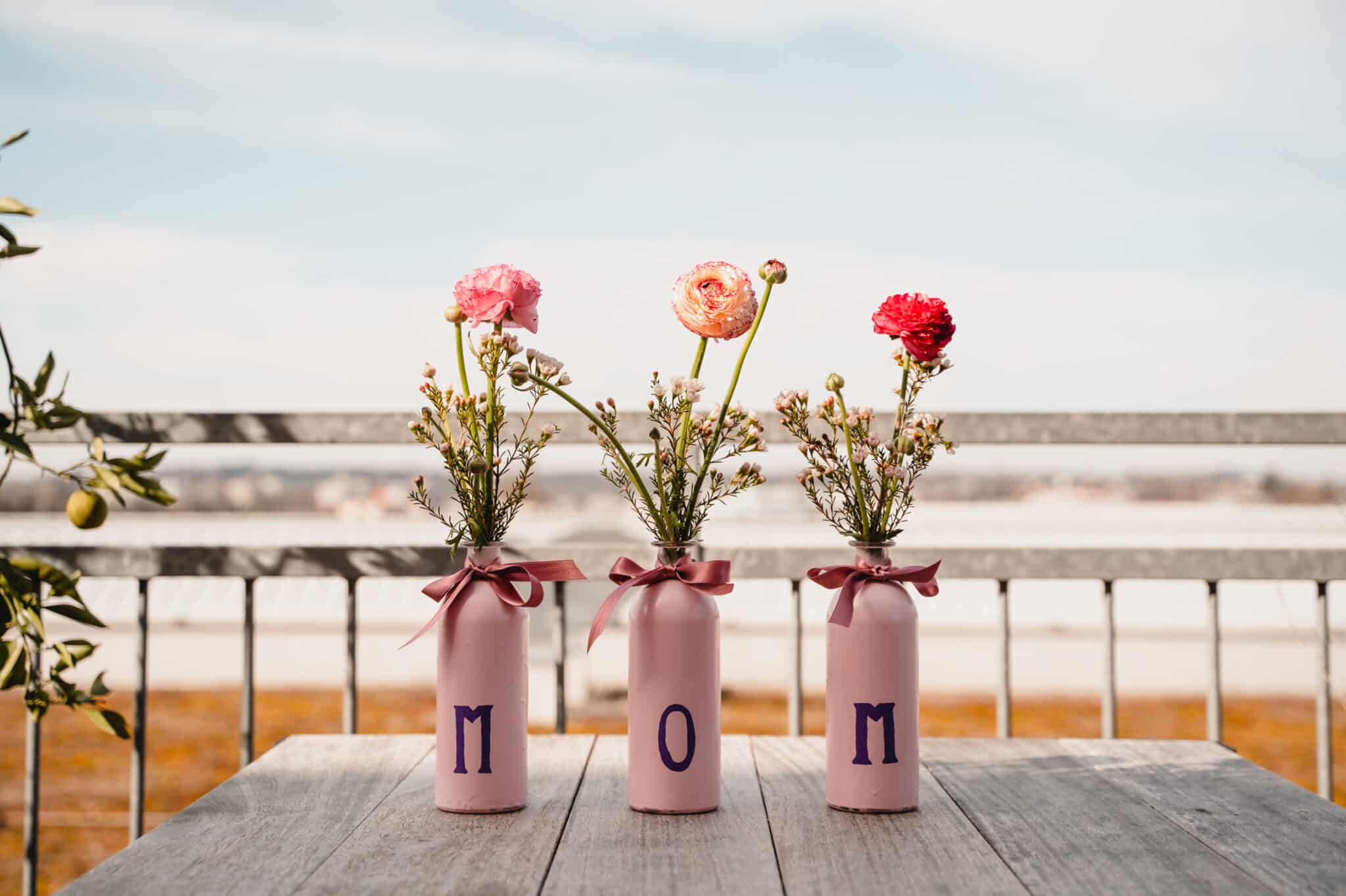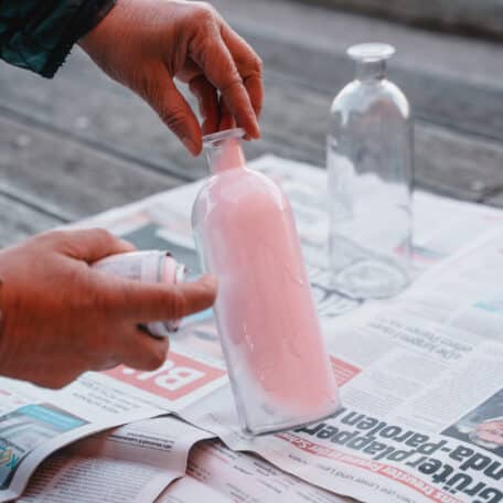 Falls es deine Mutter nicht so rosafarben mag, kannst du die Glasflaschen auch unbehandelt lassen und oben einfach eine schöne Masche umbinden.