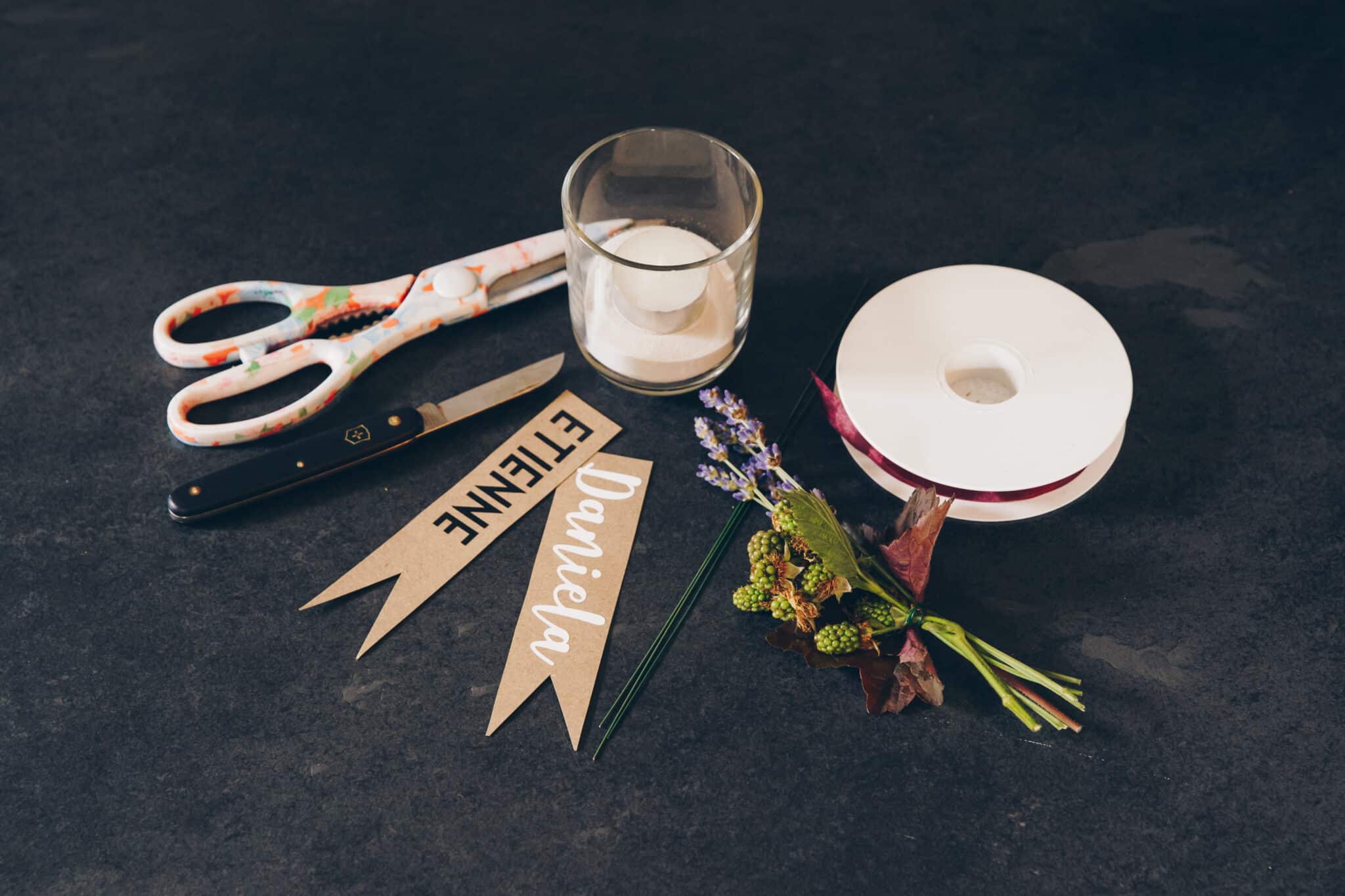 Da die Blumen auch getrocknet schön aussehen, können sie am Schluss des Anlasses von den Gästen mit nach Hause genommen werden.