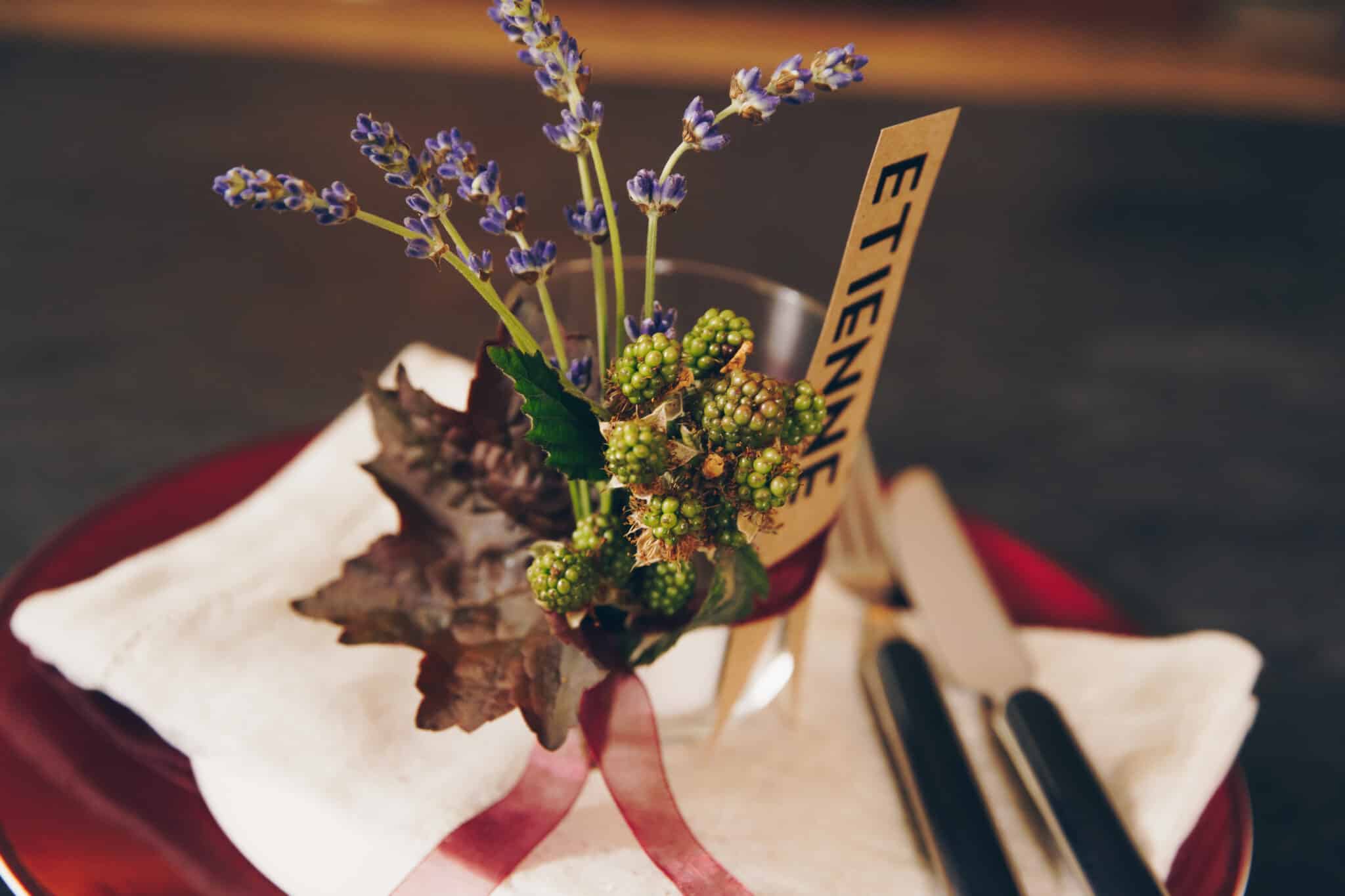 - Zweige und Blätter (z.B. Lavendel, Brombeerzweige, Heuchera-Blätter)
