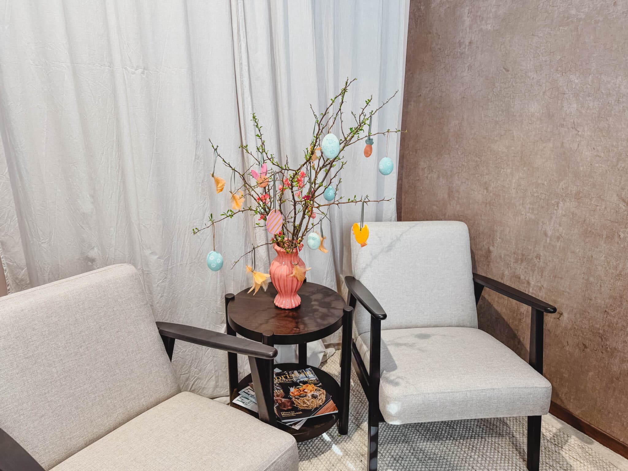 Für ein bisschen Leichtigkeit: Nimm jeweils 3–4 Federn, binde sie mit einem Band zusammen und mach an beiden Enden einen Knoten. So kannst du auch sie ganz einfach aufhängen.