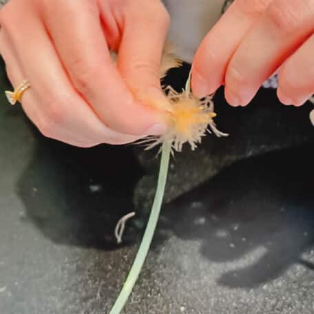Ziehe ein Band durch das Loch und mache einen Knoten, damit du deinen Anhänger am Osterbaum befestigen kannst.