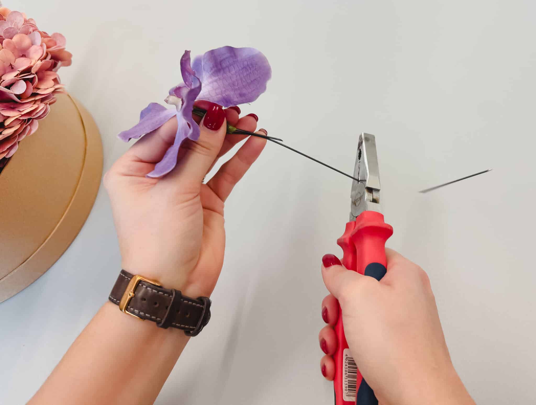 Steckschaum mit künstlichen Blumen bestücken, bis man ihn nicht mehr sieht.