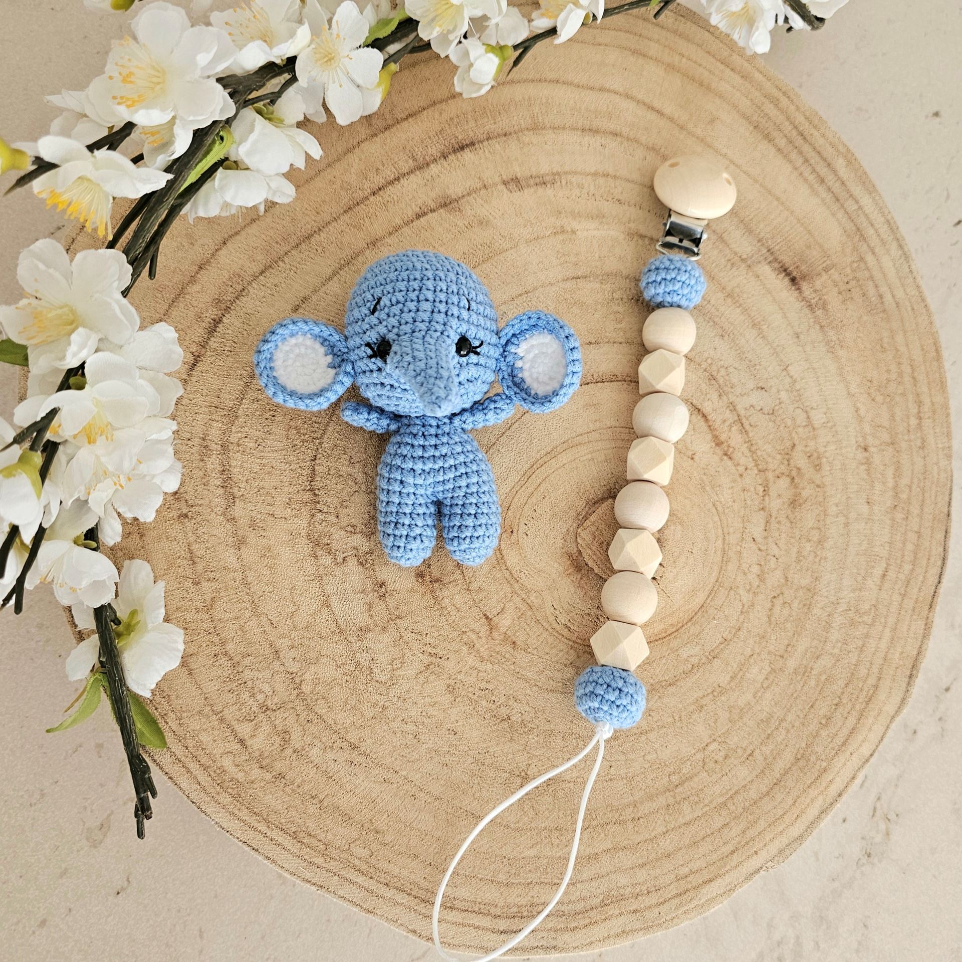 Unser 3er Set Elefäntchen ist das ideale Geschenk zur Geburt, Taufe oder Babyparty. Es enthält eine Schnullerkette, einen Häkel Mini-Elefant und eine Zahndose.