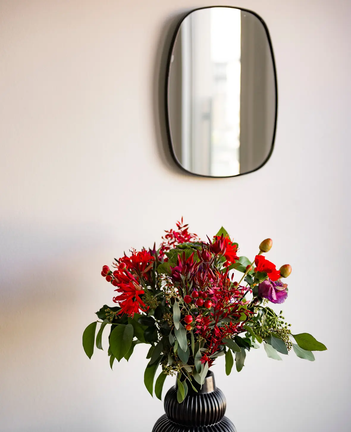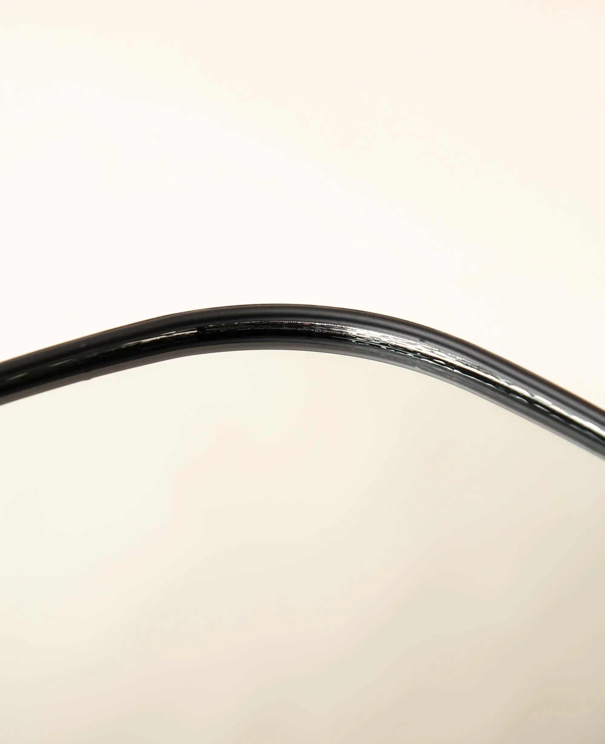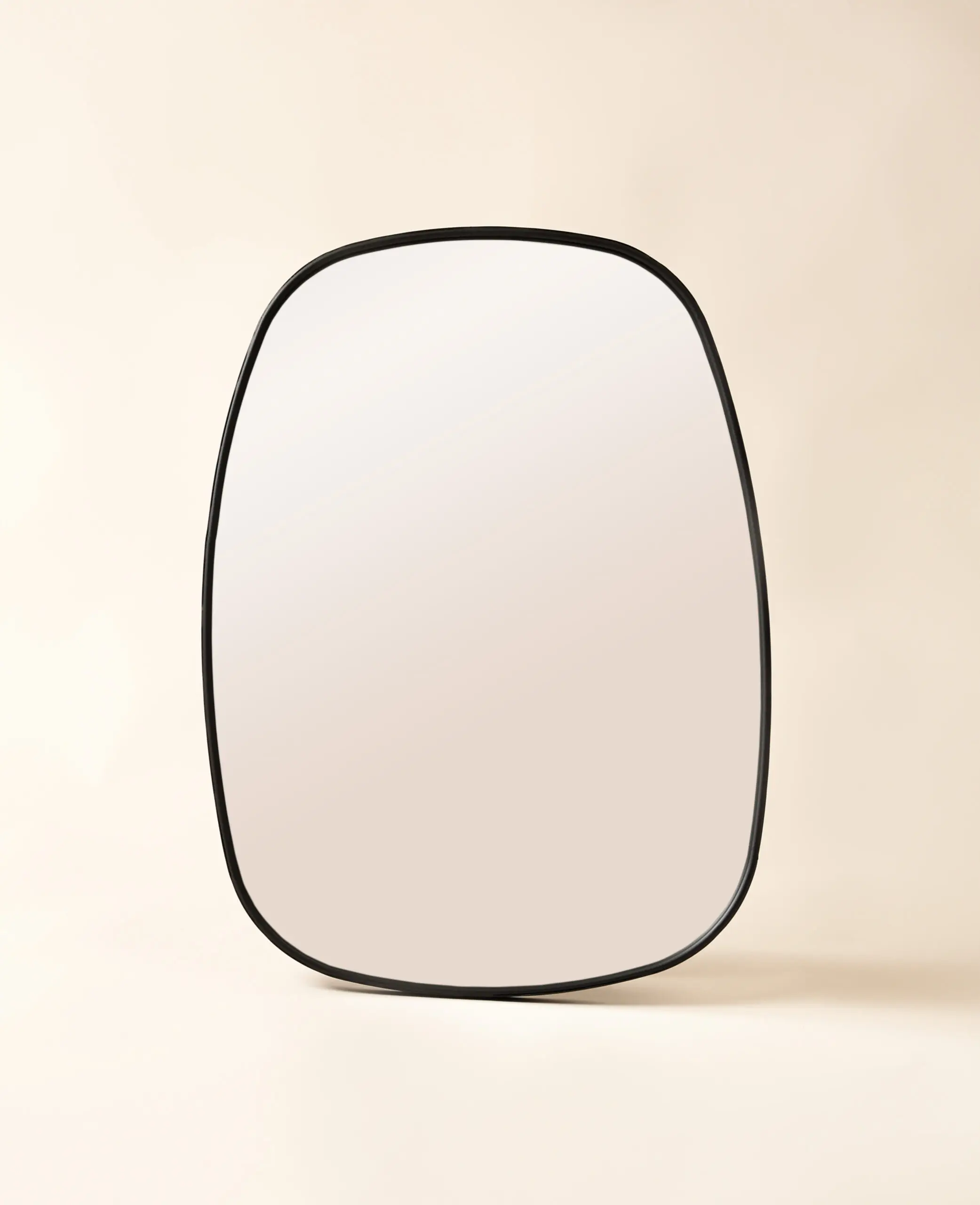 Ovaler, asymetrischer Wandspiegel mit mattschwarzem Metallrahmen, 30 x 40 cm