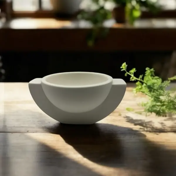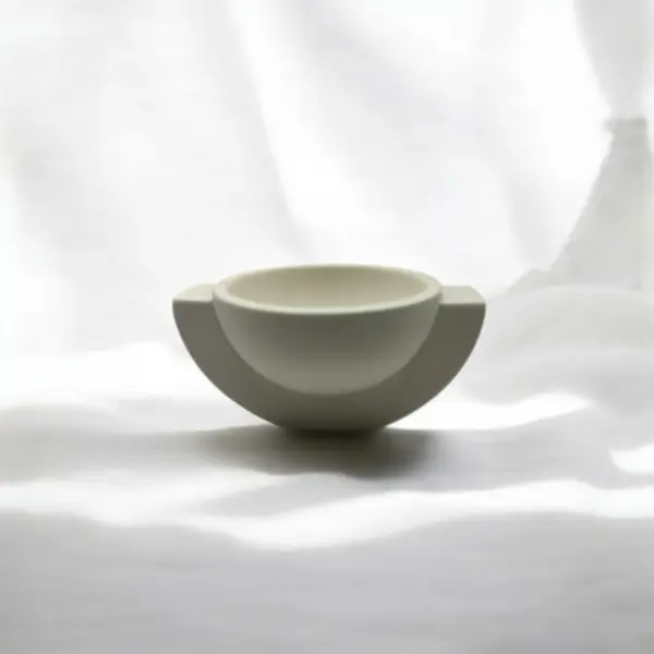 Handgegossen in der Schweiz aus einem mineralischen Eco-Komposit, wird jedes Stück sorgfältig geschliffen und versiegelt. Die matte Crème-Oberfläche verleiht der Schale eine ruhige, zeitlose Ausstrahlung.