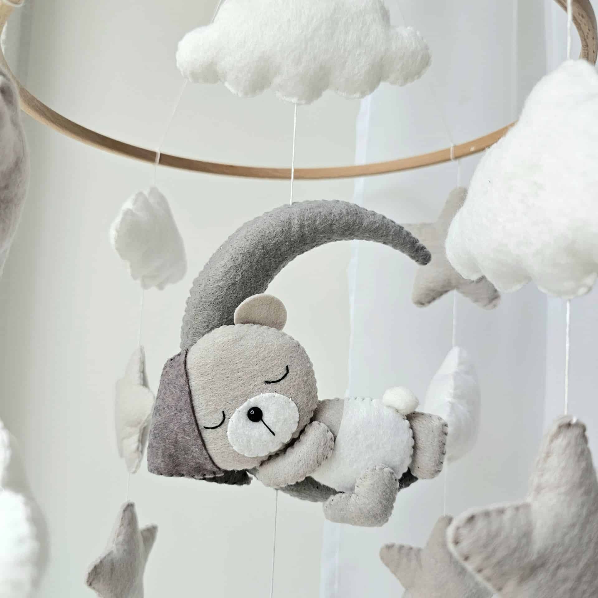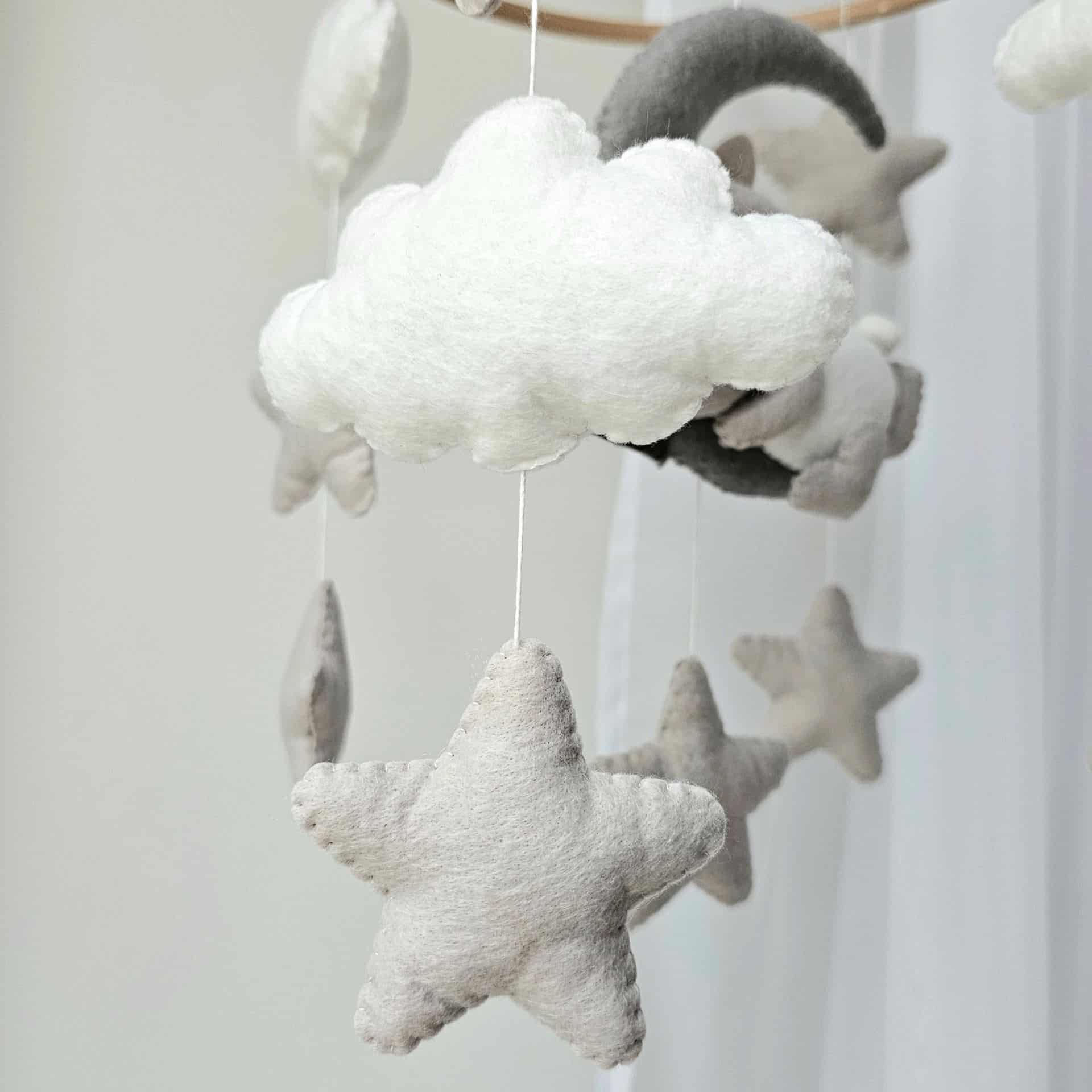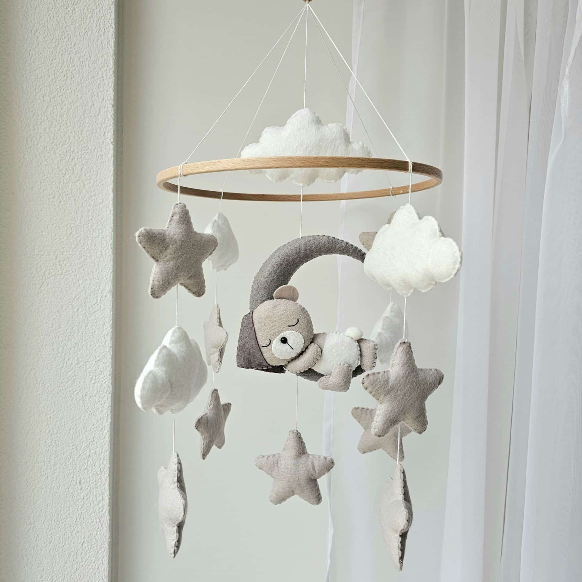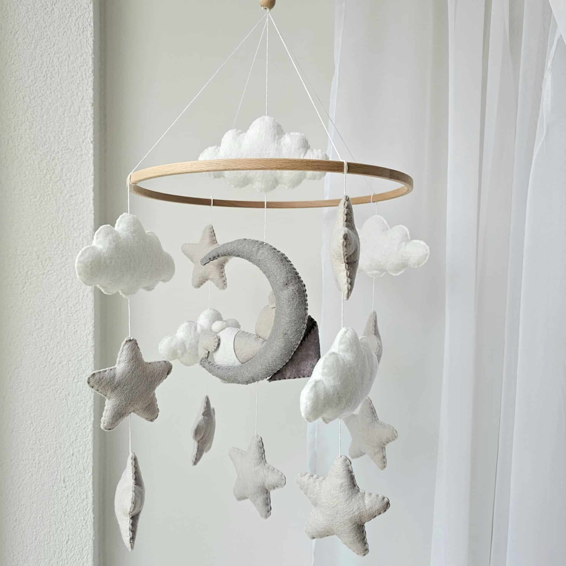 Unser Babymobile ist mehr als nur ein hübsches Accessoire – es ist ein interaktives Kunstwerk, das die Sinne deines Babys stimuliert. Die bunten Formen fördern die motorischen Fähigkeiten und es schafft eine sichere und anregende Umgebung für deinen kleinen Schatz. Einfach zu installieren und aus hochwertigen, ungiftigen Materialien gefertigt, bietet unser Mobile unvergessliche Momente voller Spielspaß und Entdeckungen für dein Baby!