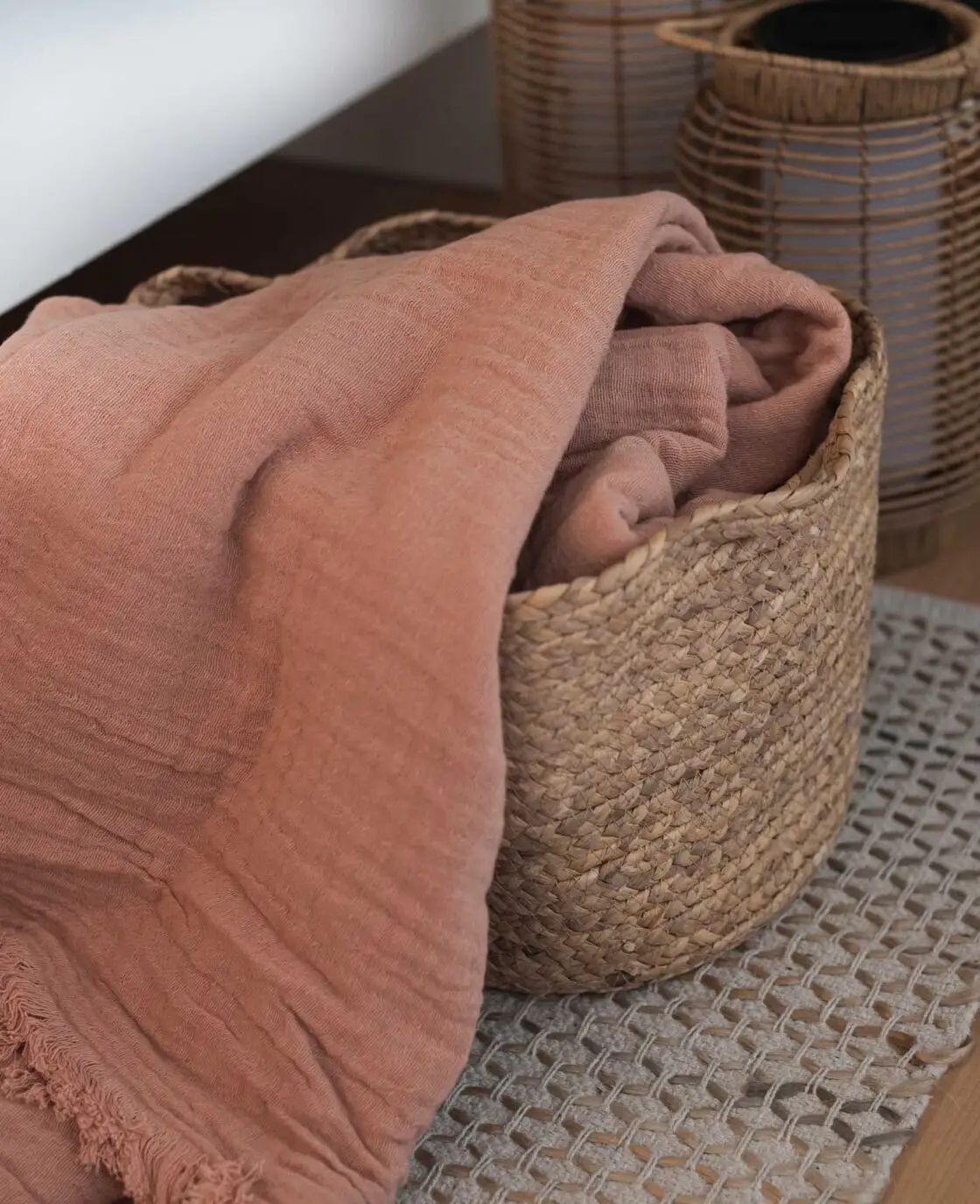 Tagesdecke aus altrosa Bio Baumwoll Musselin, 220 x 240 cm