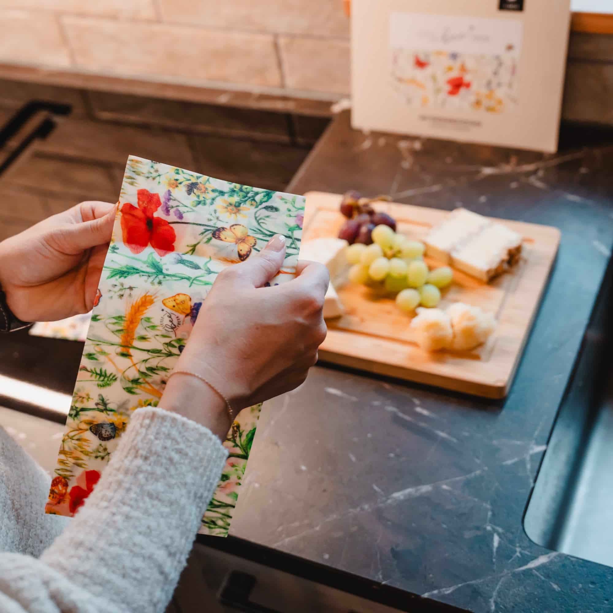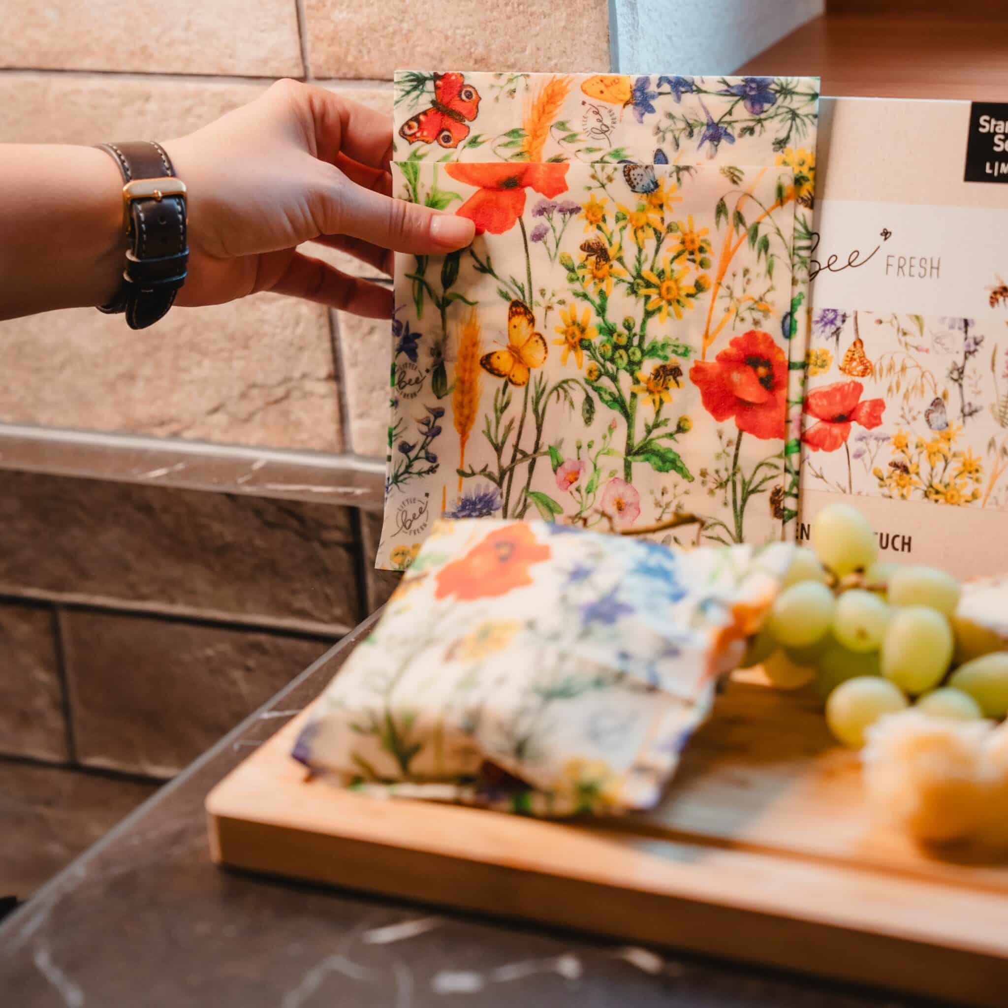 Das Bienenwachstuch ist ein nachhaltiger Begleiter im Kühlschrank, in der Küche, im Büro, in der Schule und beim Wandern. Durch die Wärme deiner Hände wird es flexibel und formbar und haftet an allen glatten Oberflächen sowie an sich selbst.