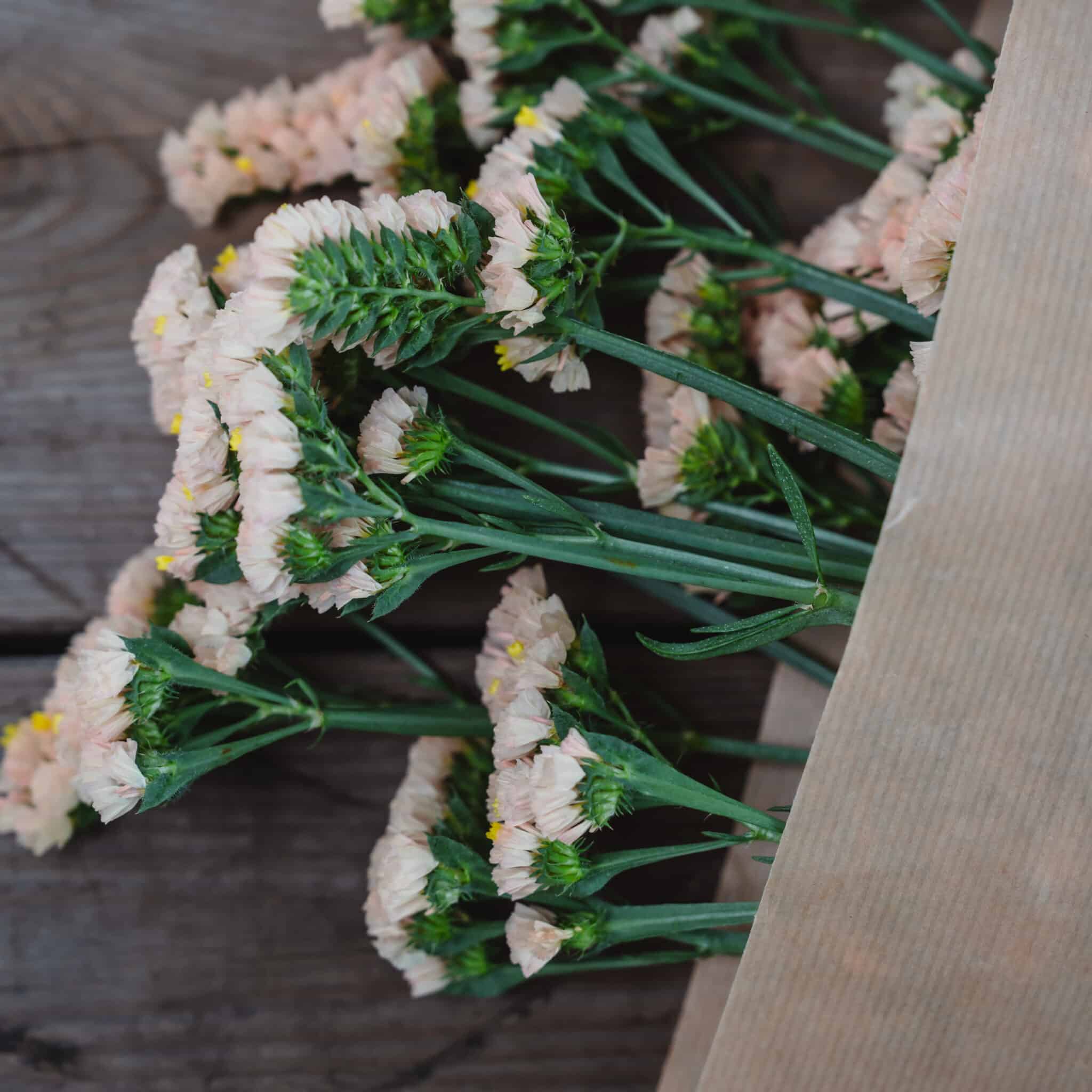 Statizen in Apricot (5 Stiele), in Blumentüte aus Kraftpapier