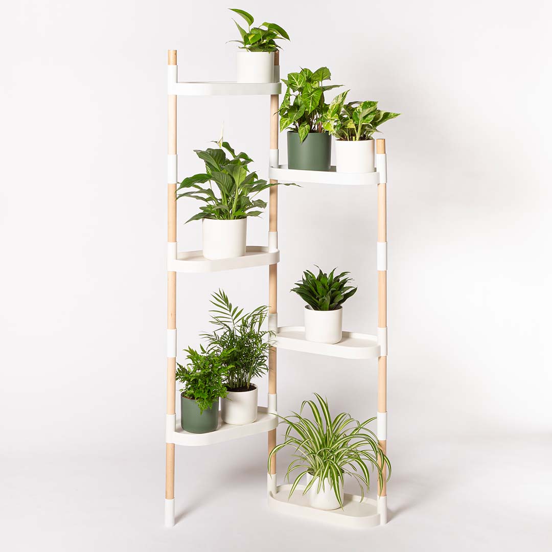 Das CitySens Pflanzenregal ist ein modularer und anpassbarer Pflanzenständer. Modell mit 6 Tabletts in matt weiss.