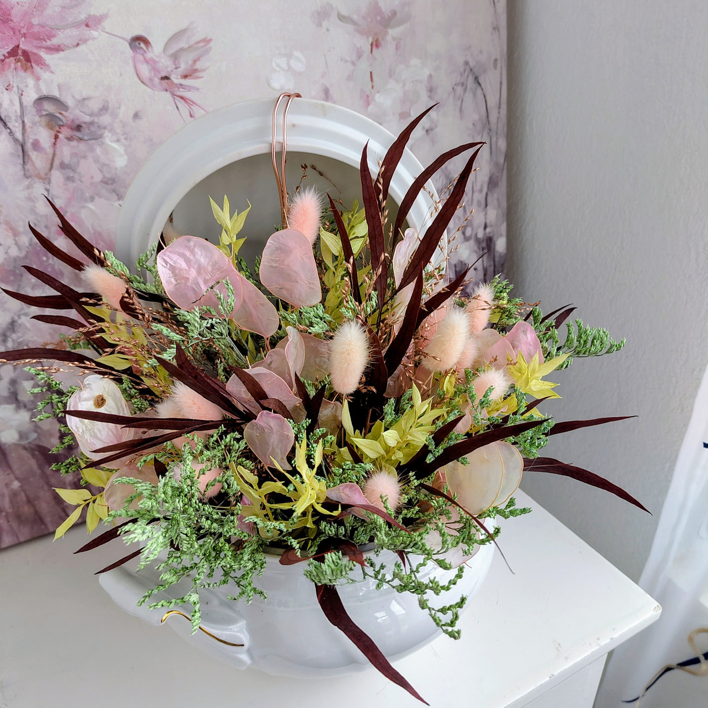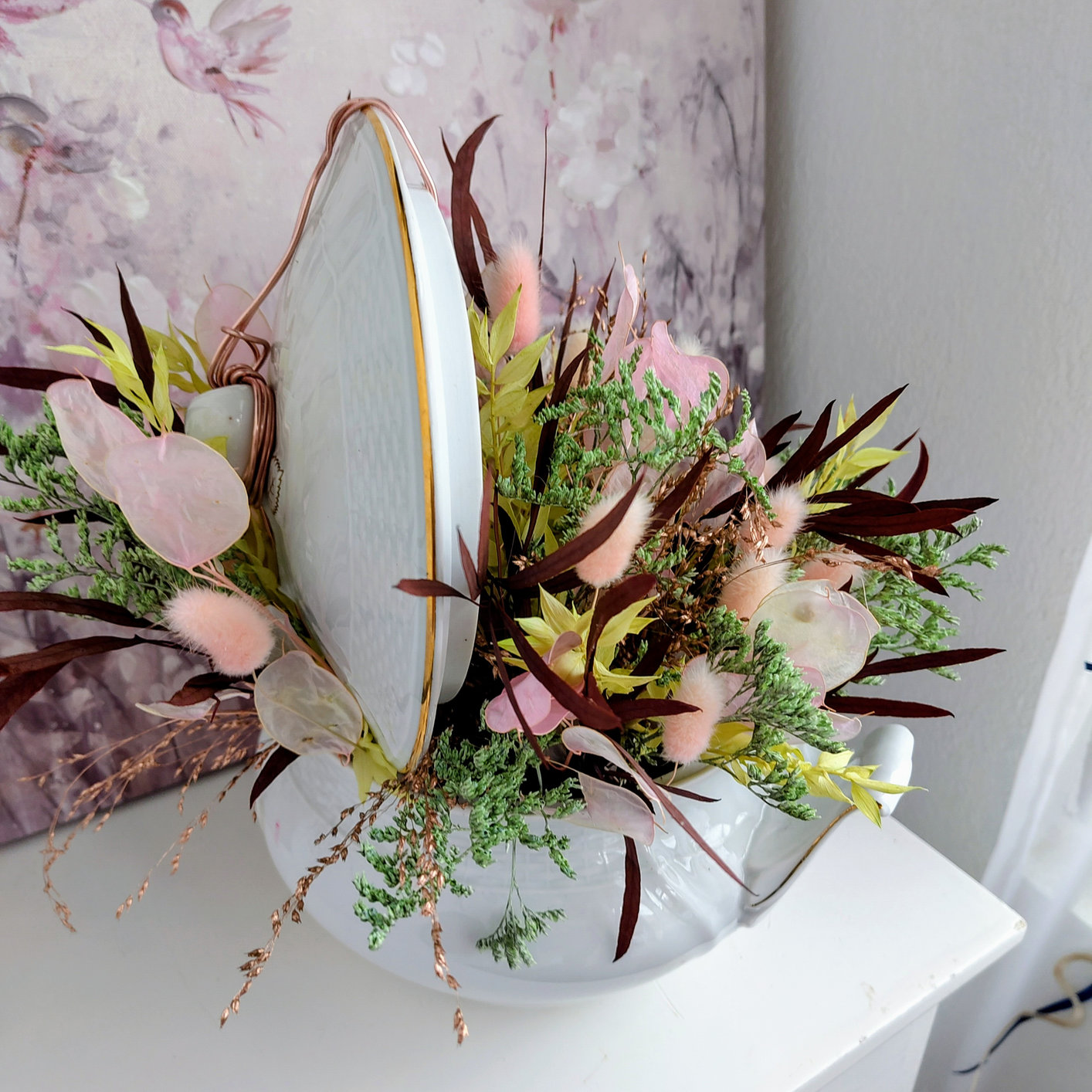 Wunderschöne Suppenschüssel, garniert mit getrockneten und stabilisierten Pflanzen, originelles Geschenk, ein Unikat.
