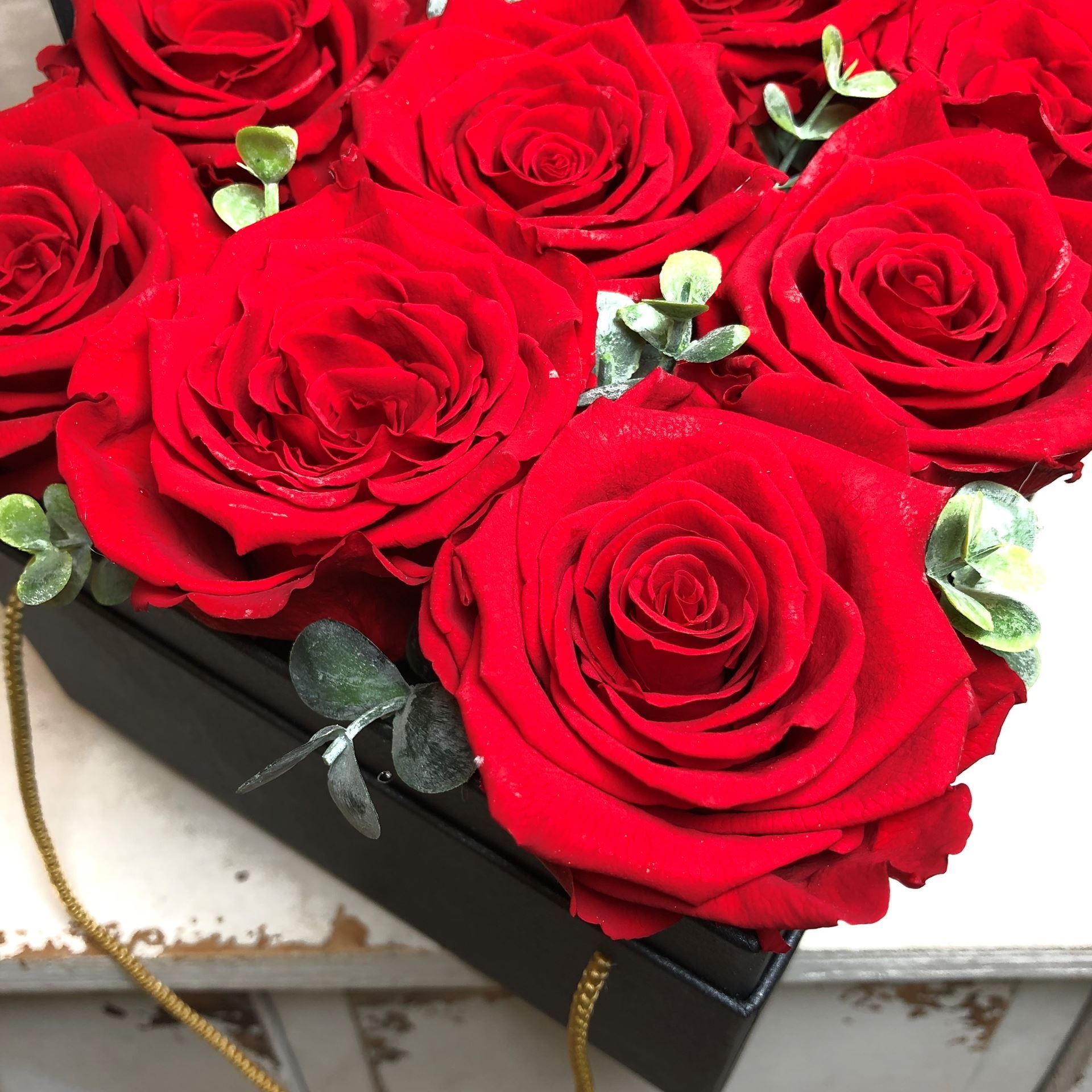 Wunderschöne edle schwarze Rosenbox «Love» mit 9 stabilisierten roten Rosen