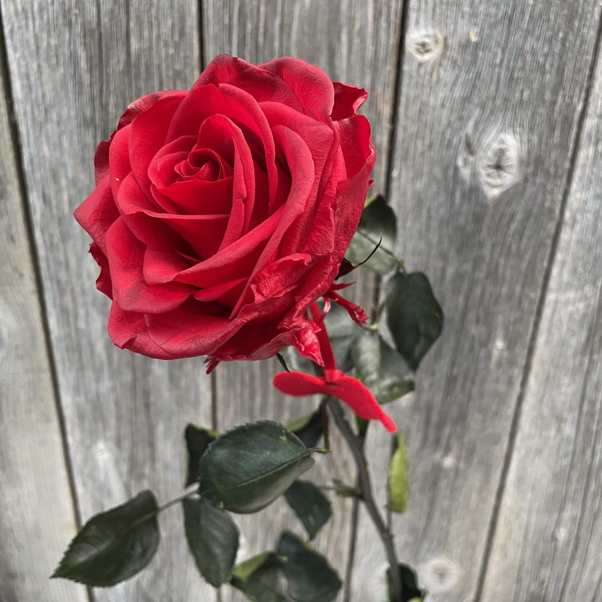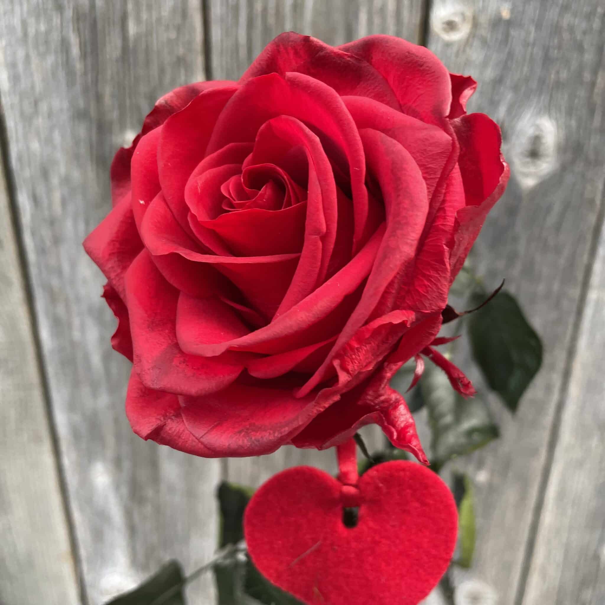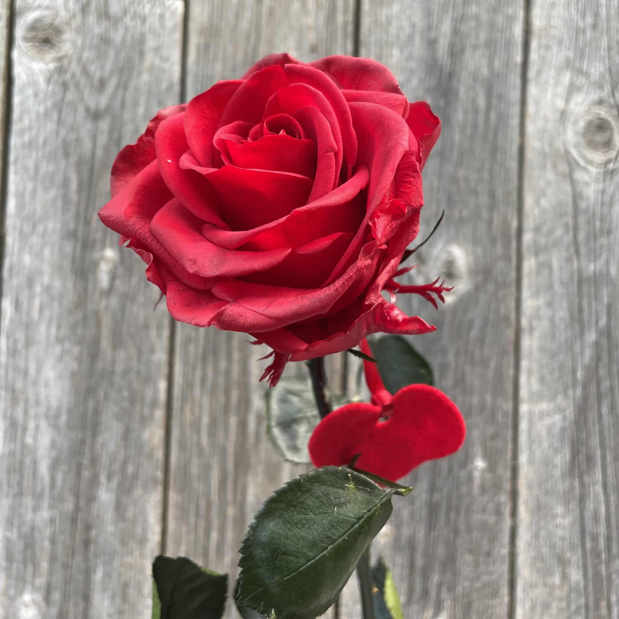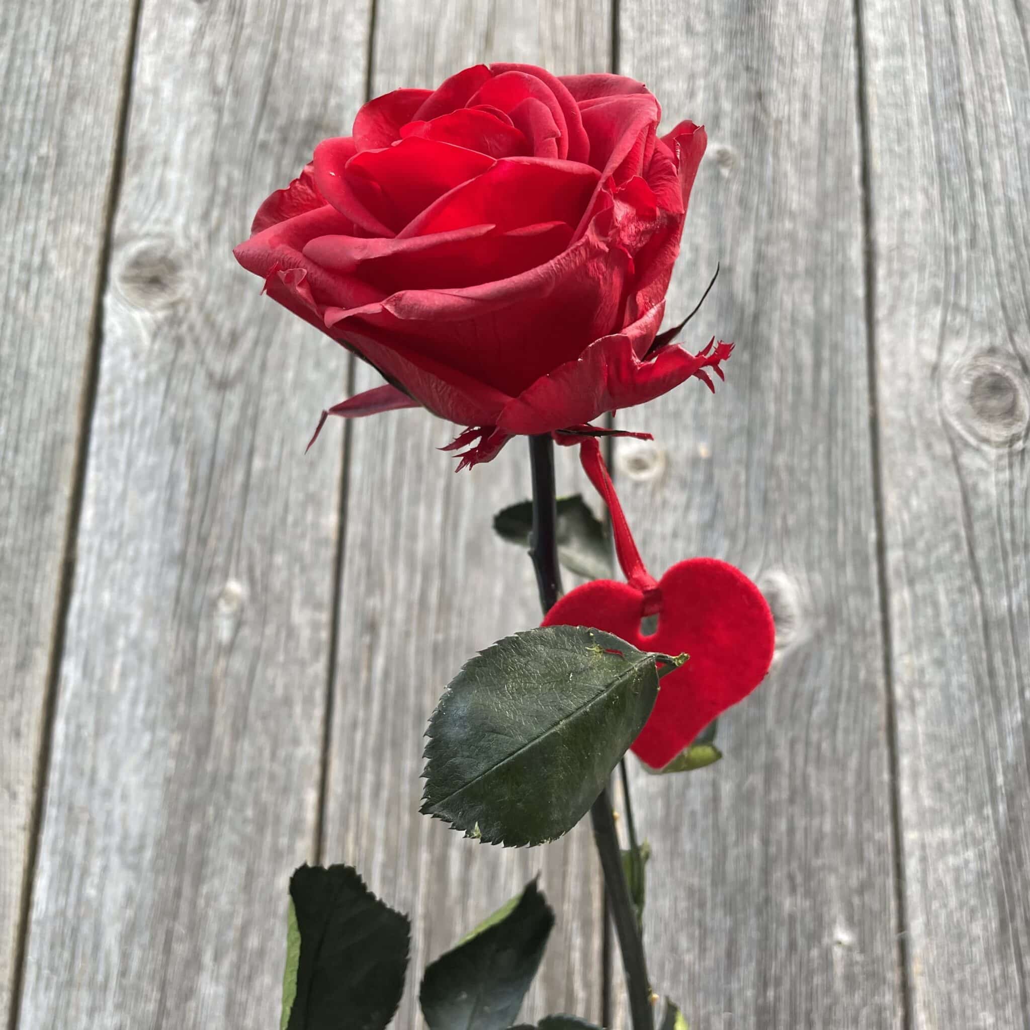 Eine echte edle rote stabilisierte Einzelrose mit Herz