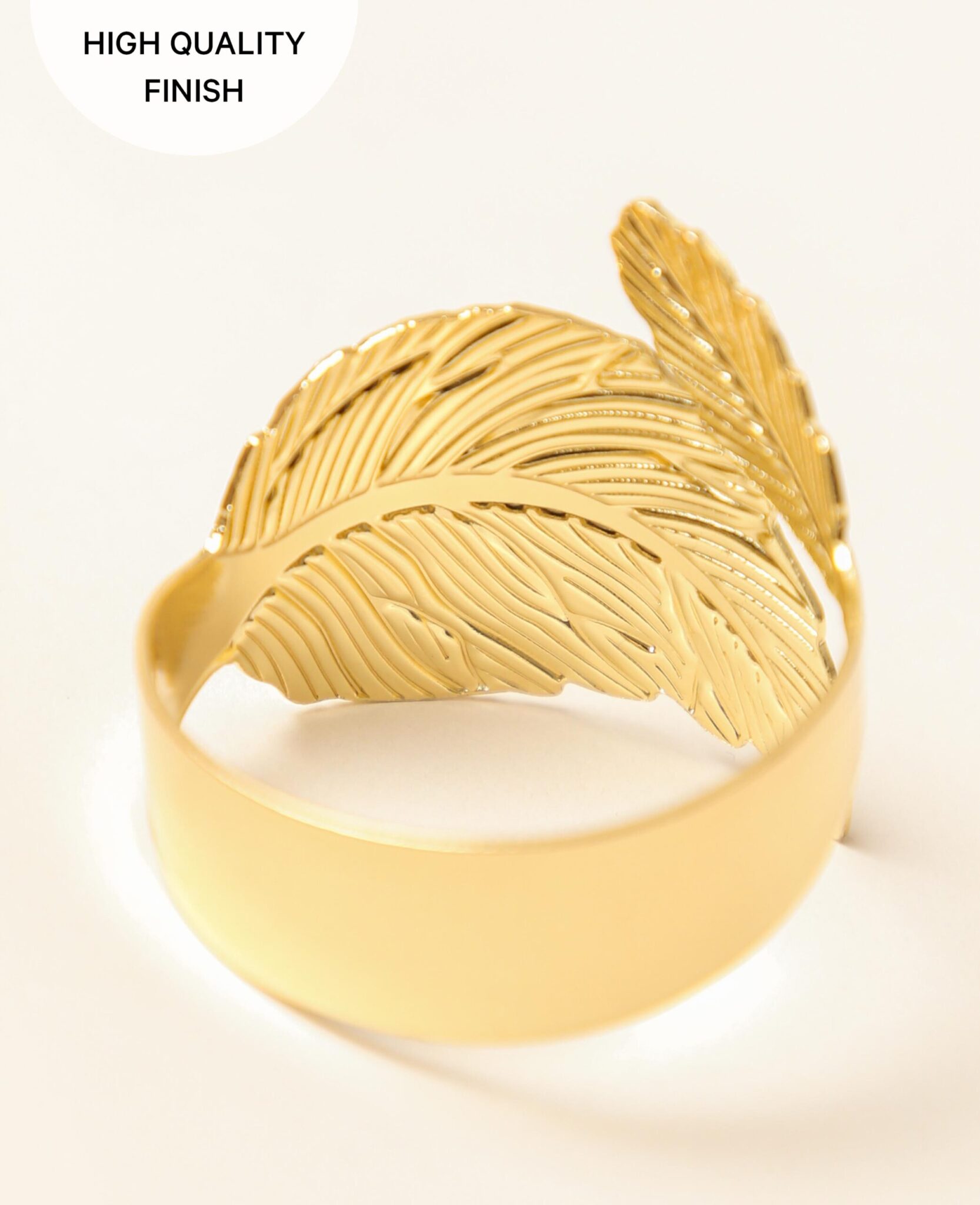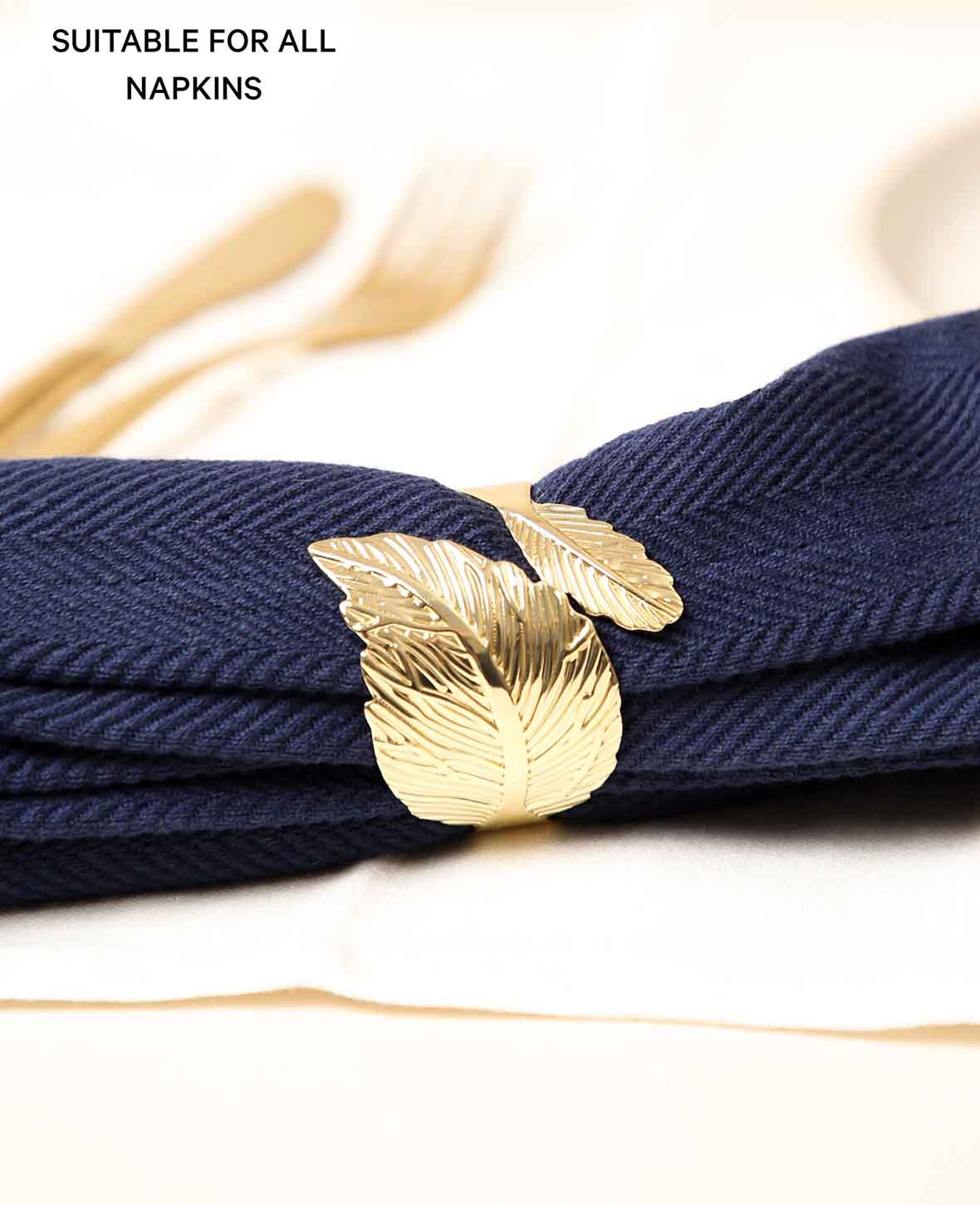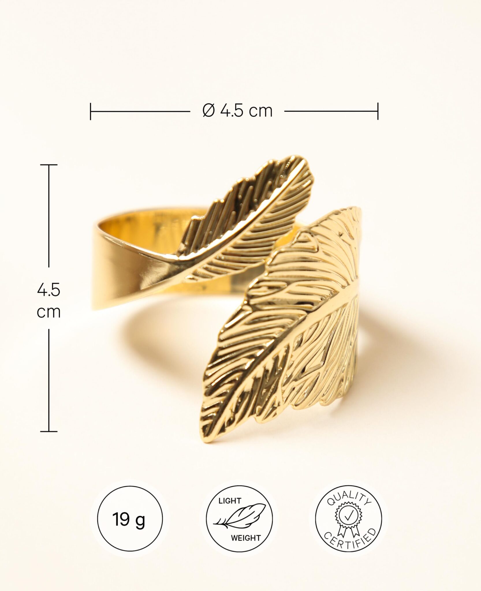 Eleganter Serviettenring in Feder / Blattform aus Metall für Stoffservietten, Ø 4.5 cm, Gold
