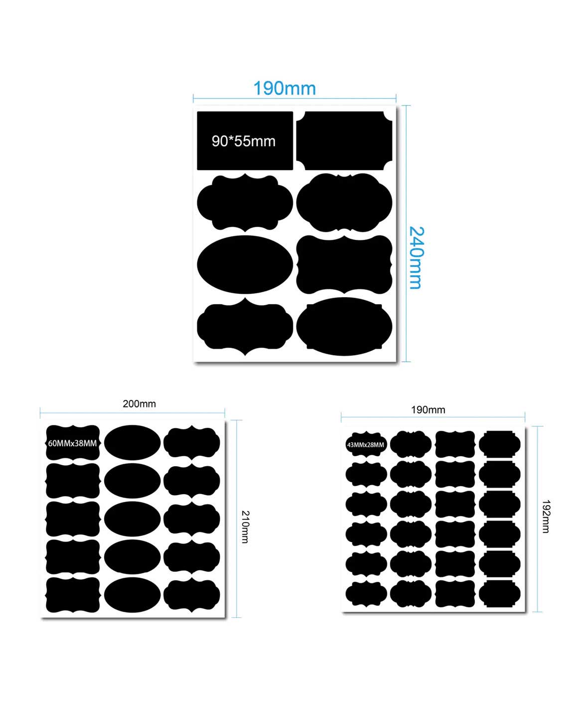 (282er) Etiketten Kreidetafel inkl. Marker – Schwarz