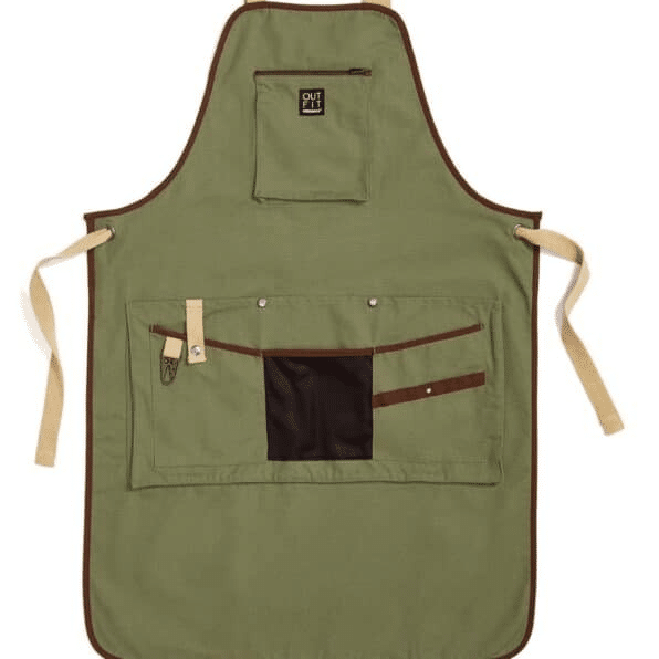 Die umfassendste OUTFIT-Schürze für jeden Bedarf. Hergestellt aus schwerer Baumwolle mit fünf Taschen, eine davon mit Reissverschluss. Anpassungsfähig an jede Arbeitsanforderung dank der vielen Funktionen für alle Werkzeuge, die du benötigst. Verstellbarer Rückenverschluss für maximalen Komfort und Bequemlichkeit.