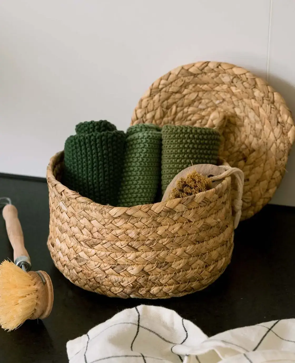 Die drei hochwertigen Spültücher in Olive, Salbei und rosa aus gestrickter Baumwolle eignen sich wunderbar zum Spülen oder Putzen der Küche und des Bads. Alternativ lassen sie sich auch ideal als Gesichts- oder Handtücher verwenden, da ihre weiche Struktur, frei von Mikroplastik, für eine sanfte Reinigung sorgt.