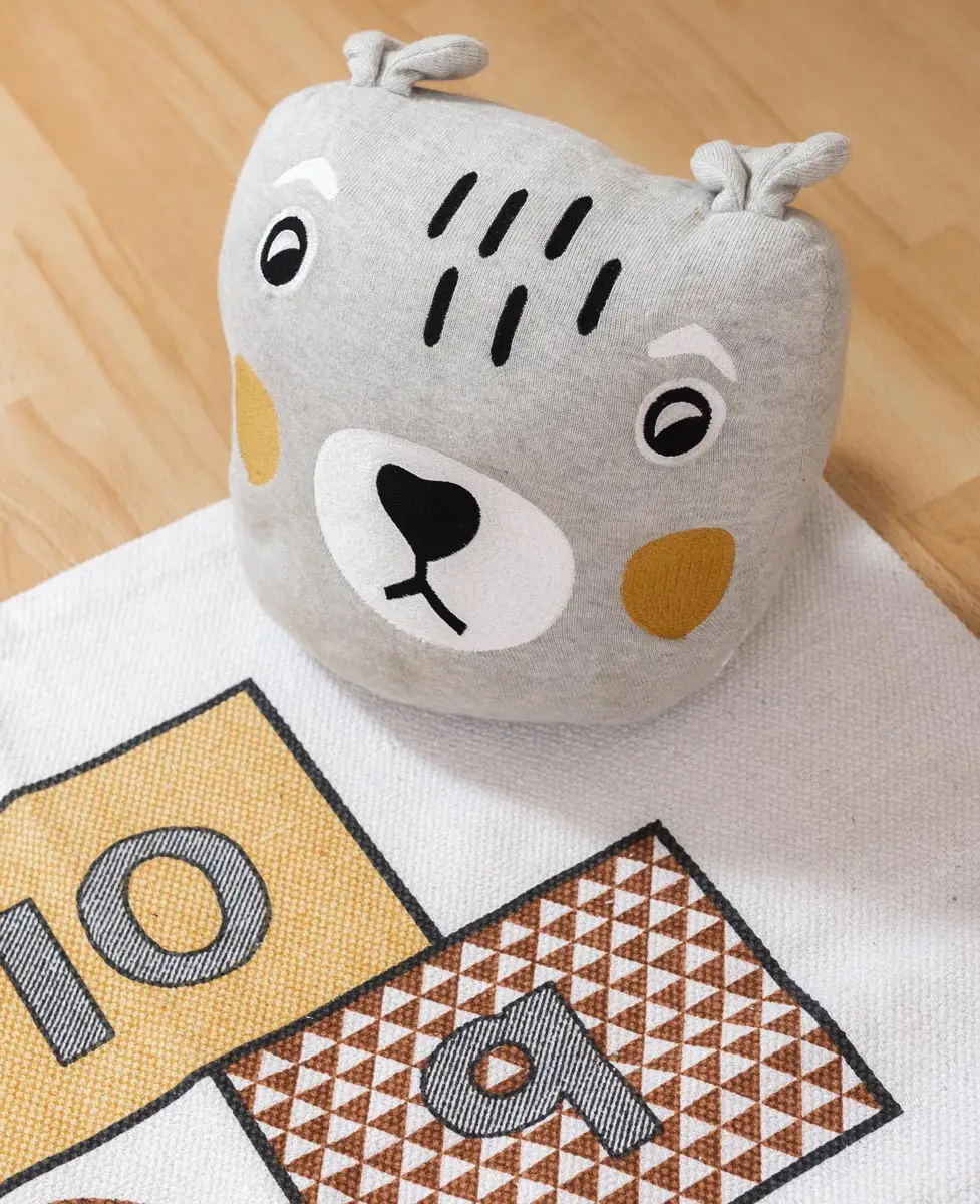 • Gestricktes Kissen mit Bär Motiv aufgestickt
