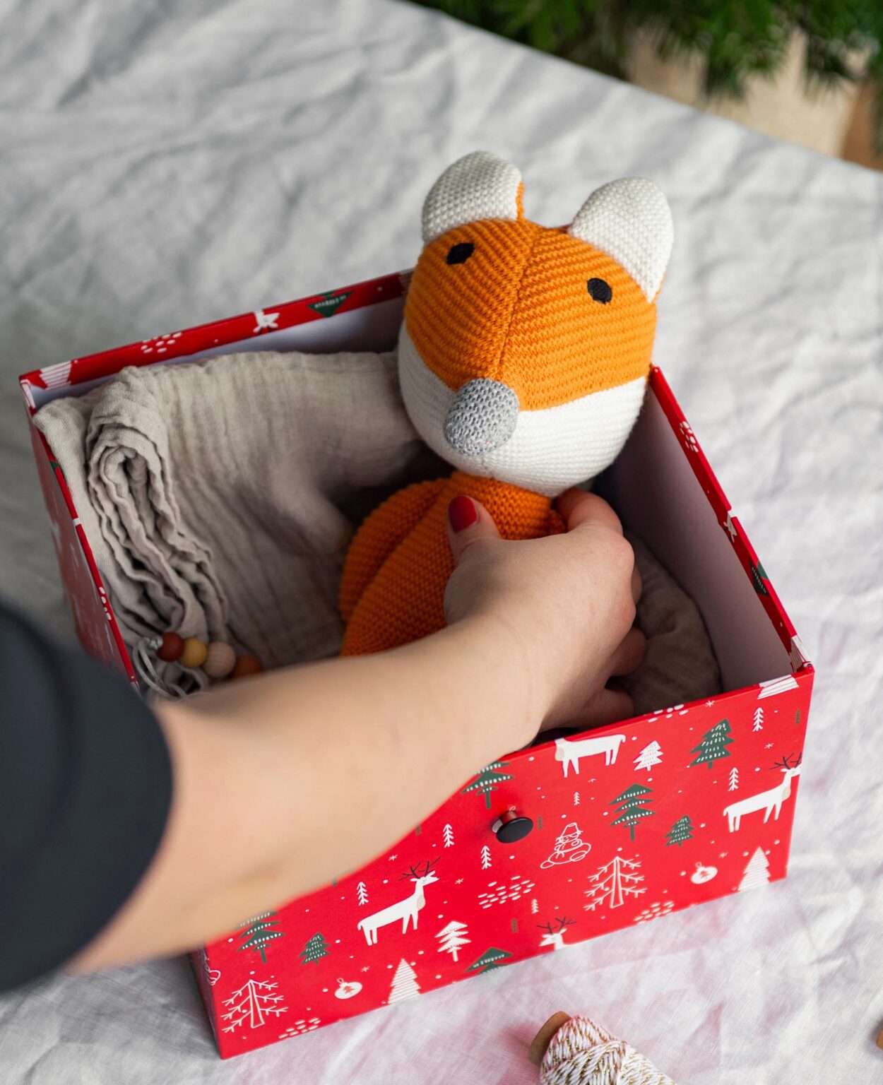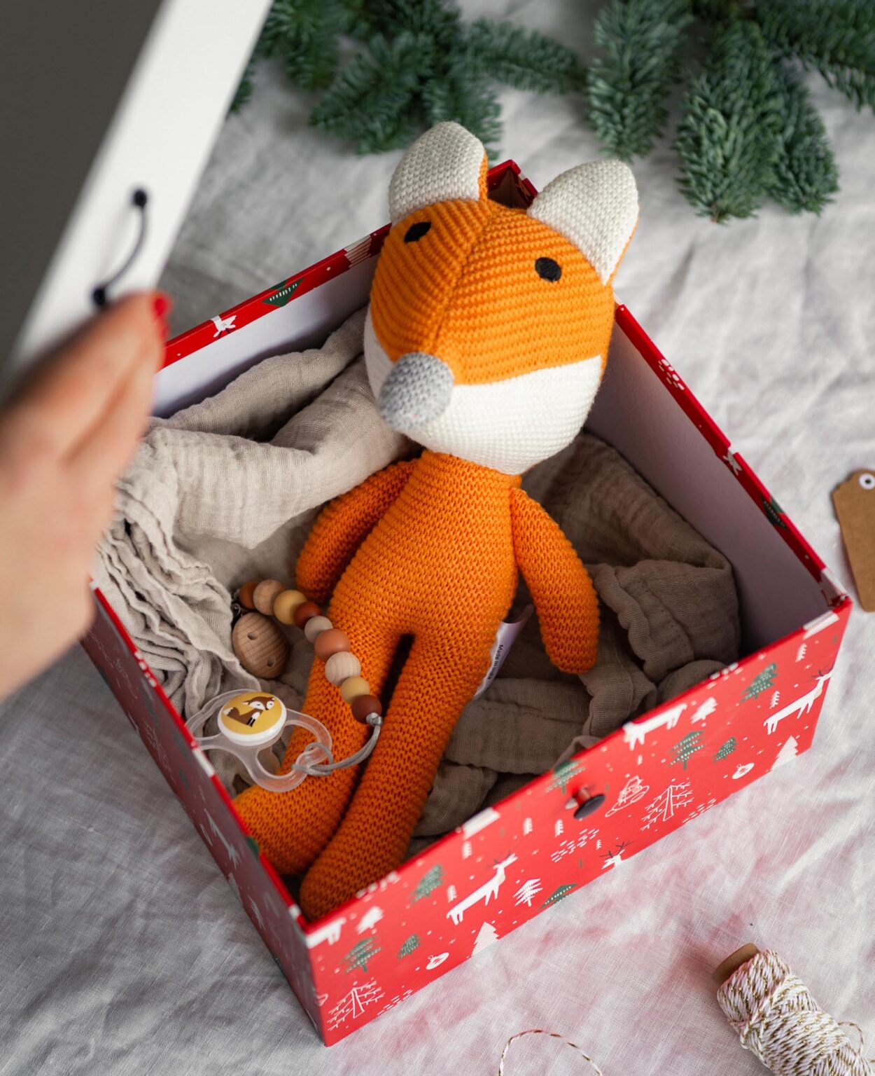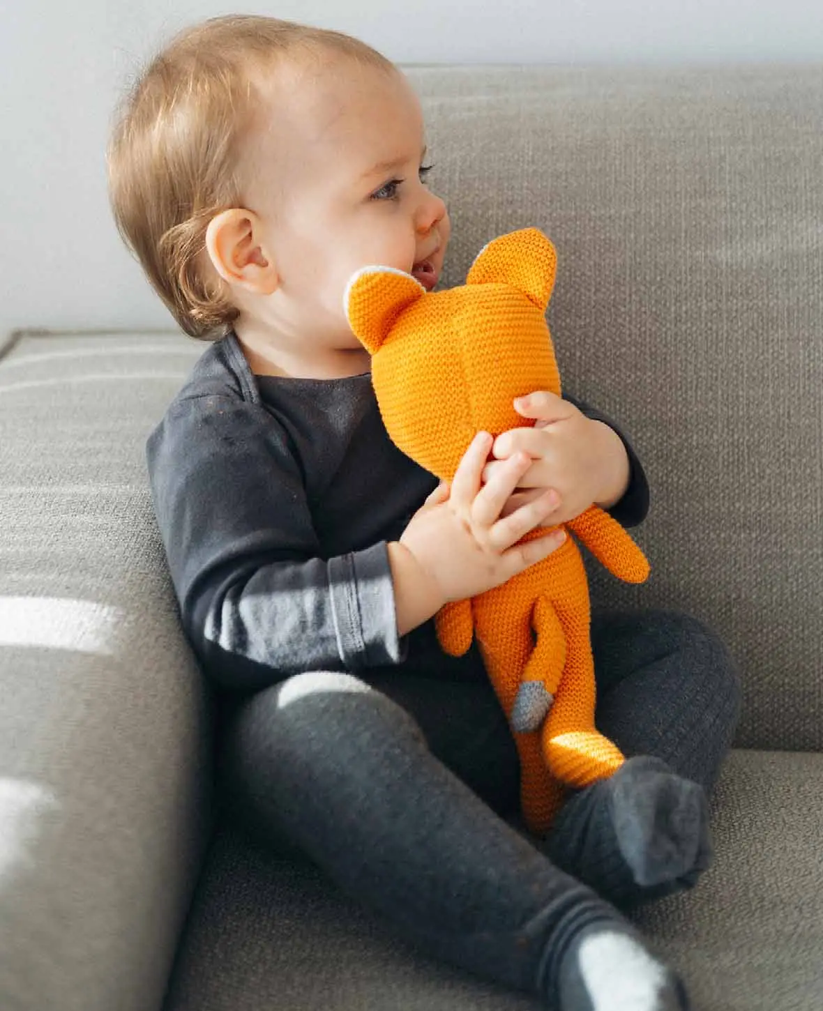 Dieser süsse Fuchs aus gestrickter Baumwolle lässt Kinderherzen höher schlagen und macht sich in jedem Kinderzimmer tierisch gut.