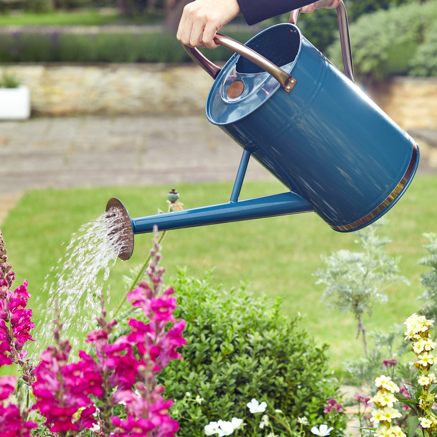 Die Giesskanne aus pulverbeschichtetem Zink.
