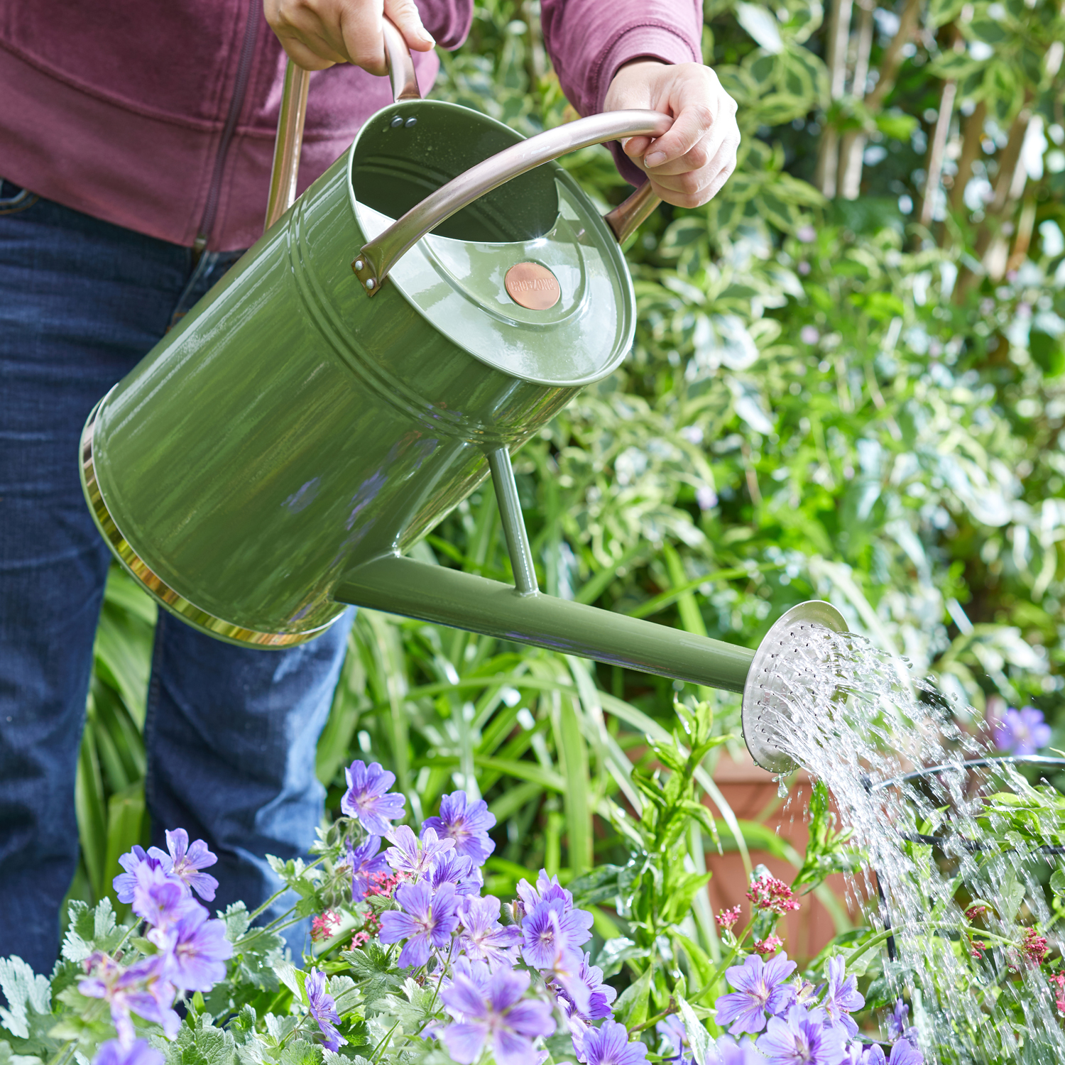 Die Giesskanne aus pulverbeschichtetem Zink.