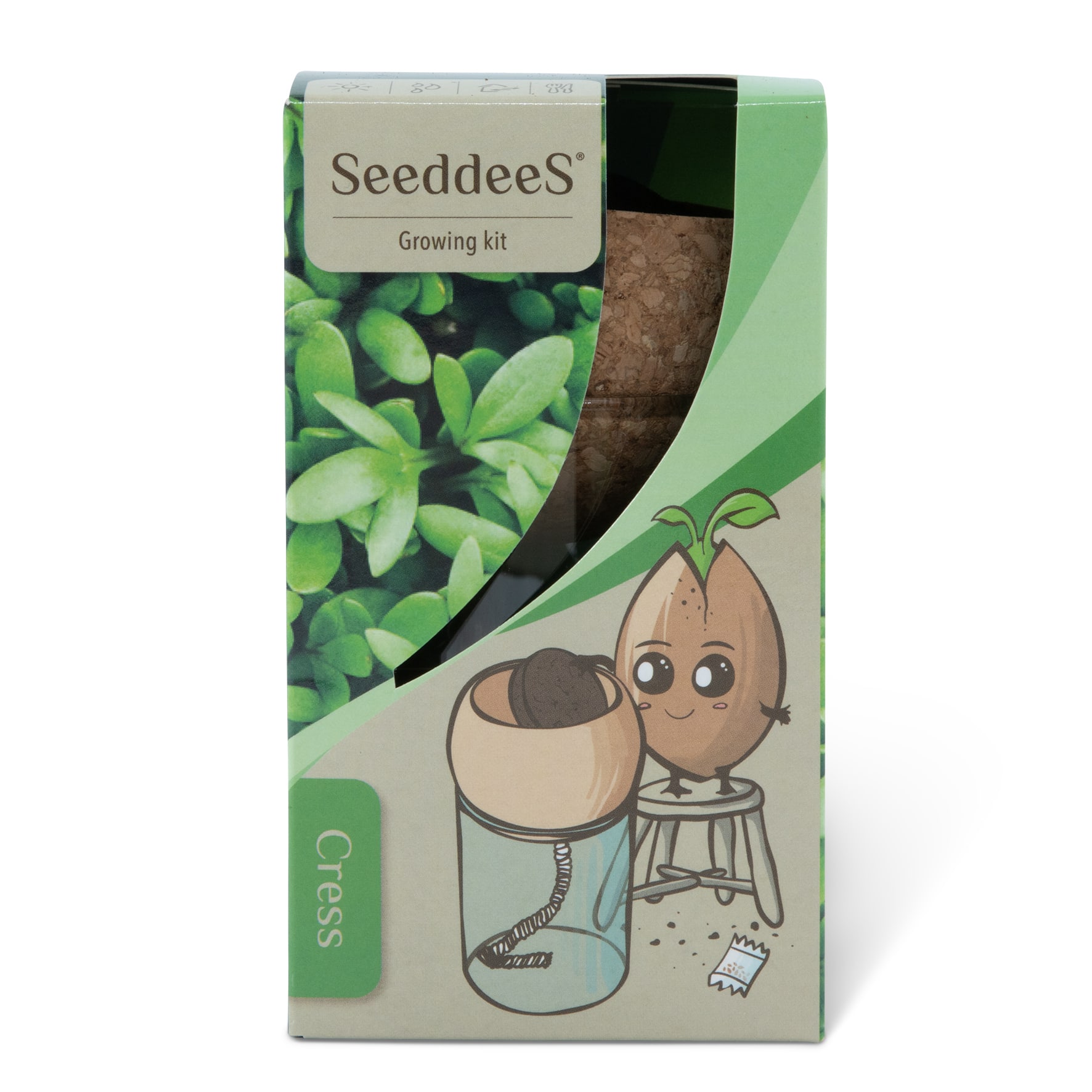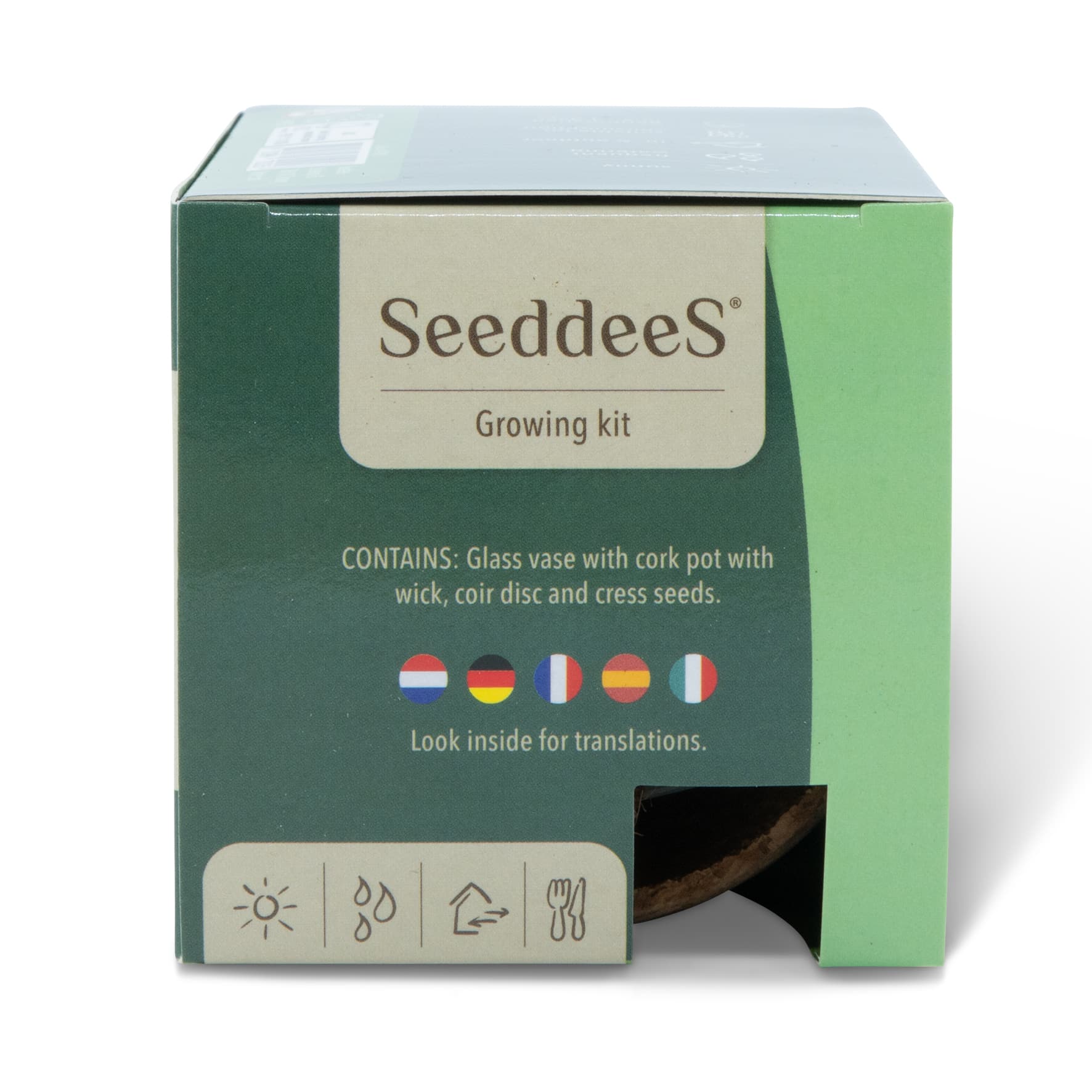ENTHÄLT: Glasvase mit Korkgefäss mit Docht, Kokostablette und Kresse-Samen.