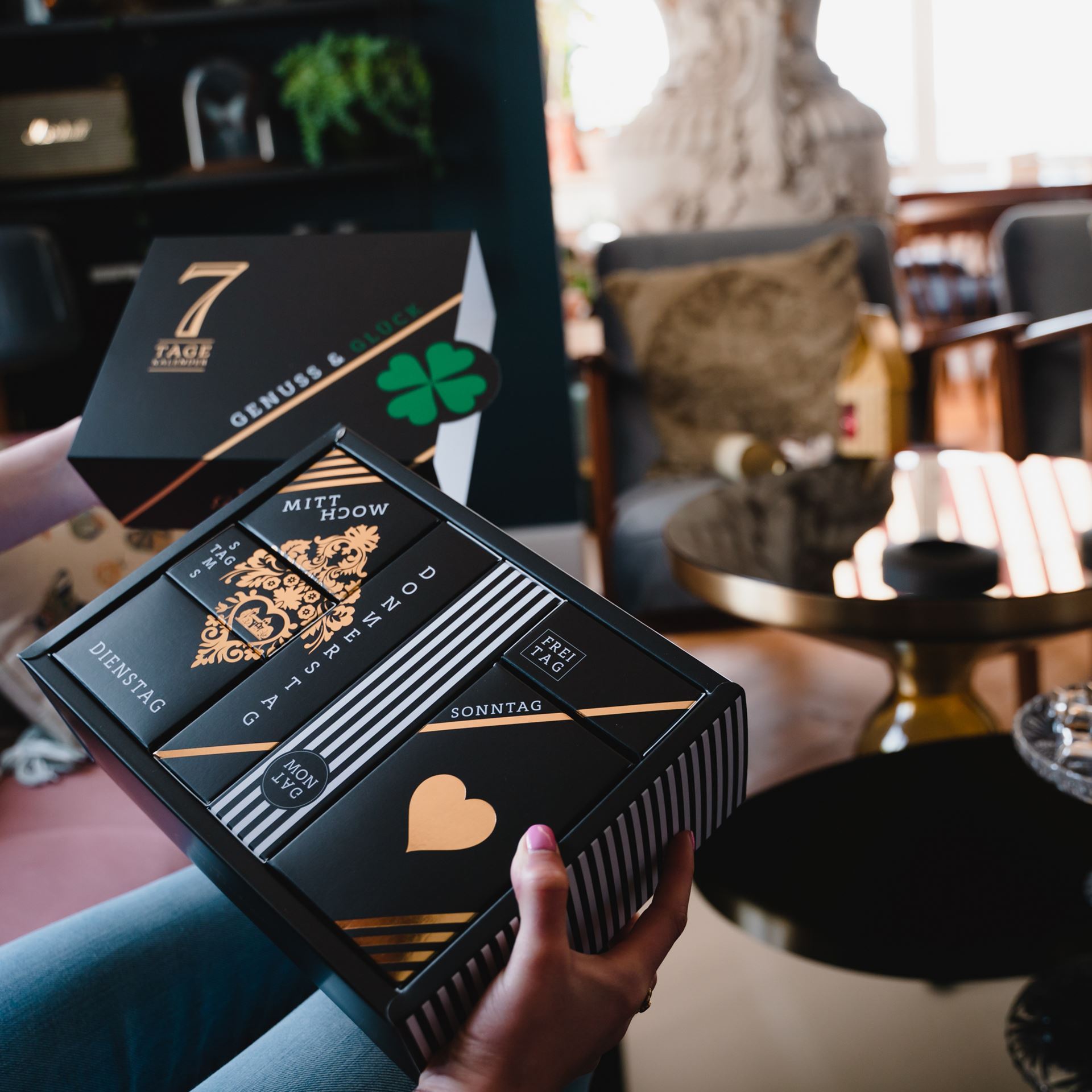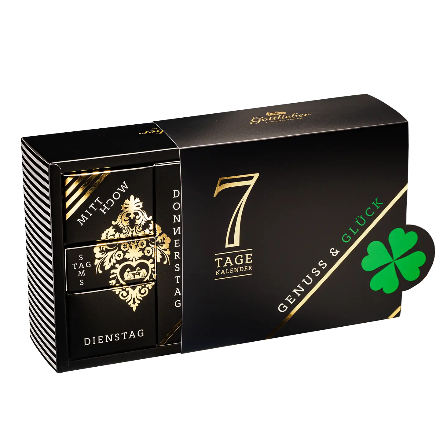 Gottlieber Wochenkalender Glück gefüllt mit sieben Köstlichkeiten.