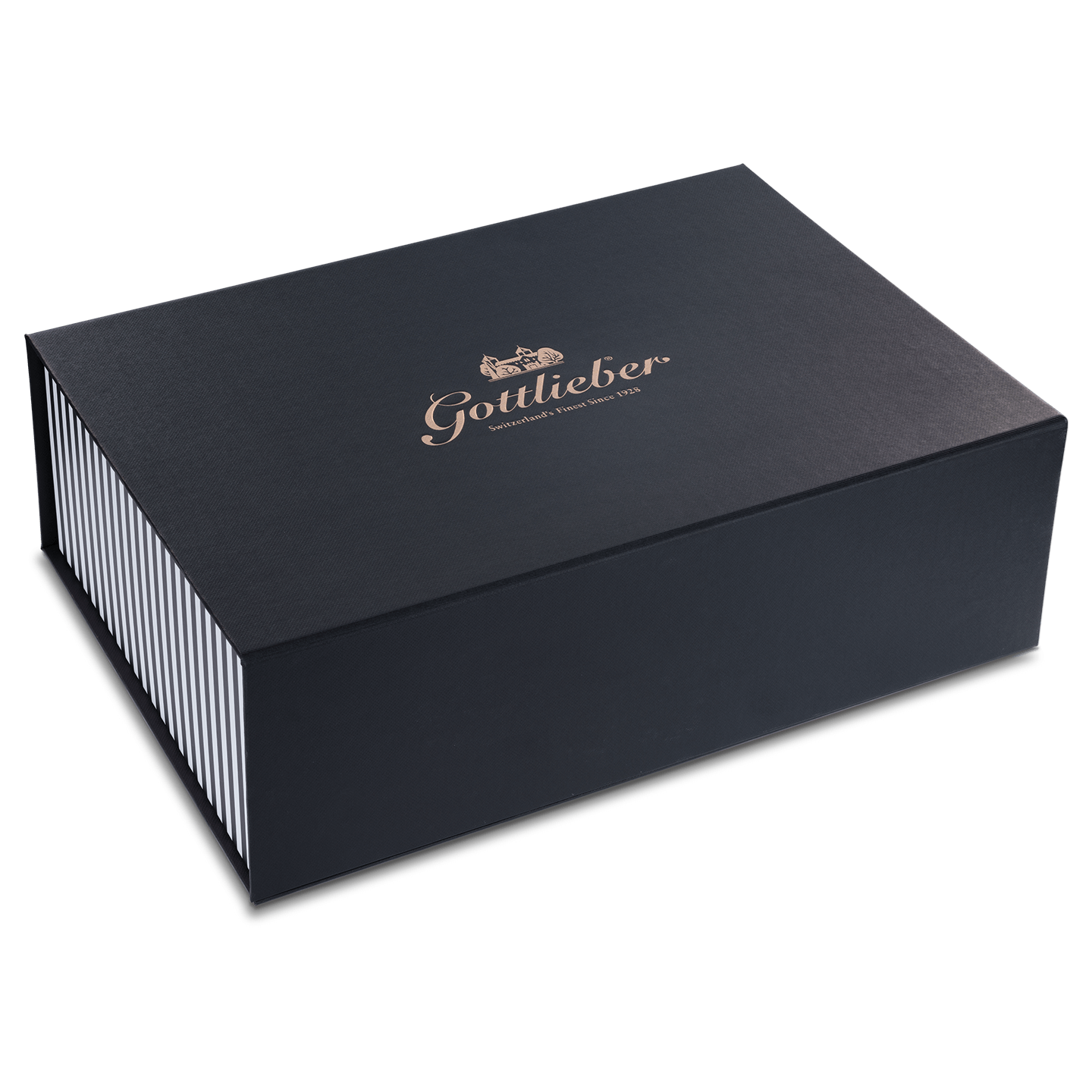 Elegante Geschenkbox mit verschiedenen Gottlieber Hüppen und weiteren feinen Schokoladenspezialitäten