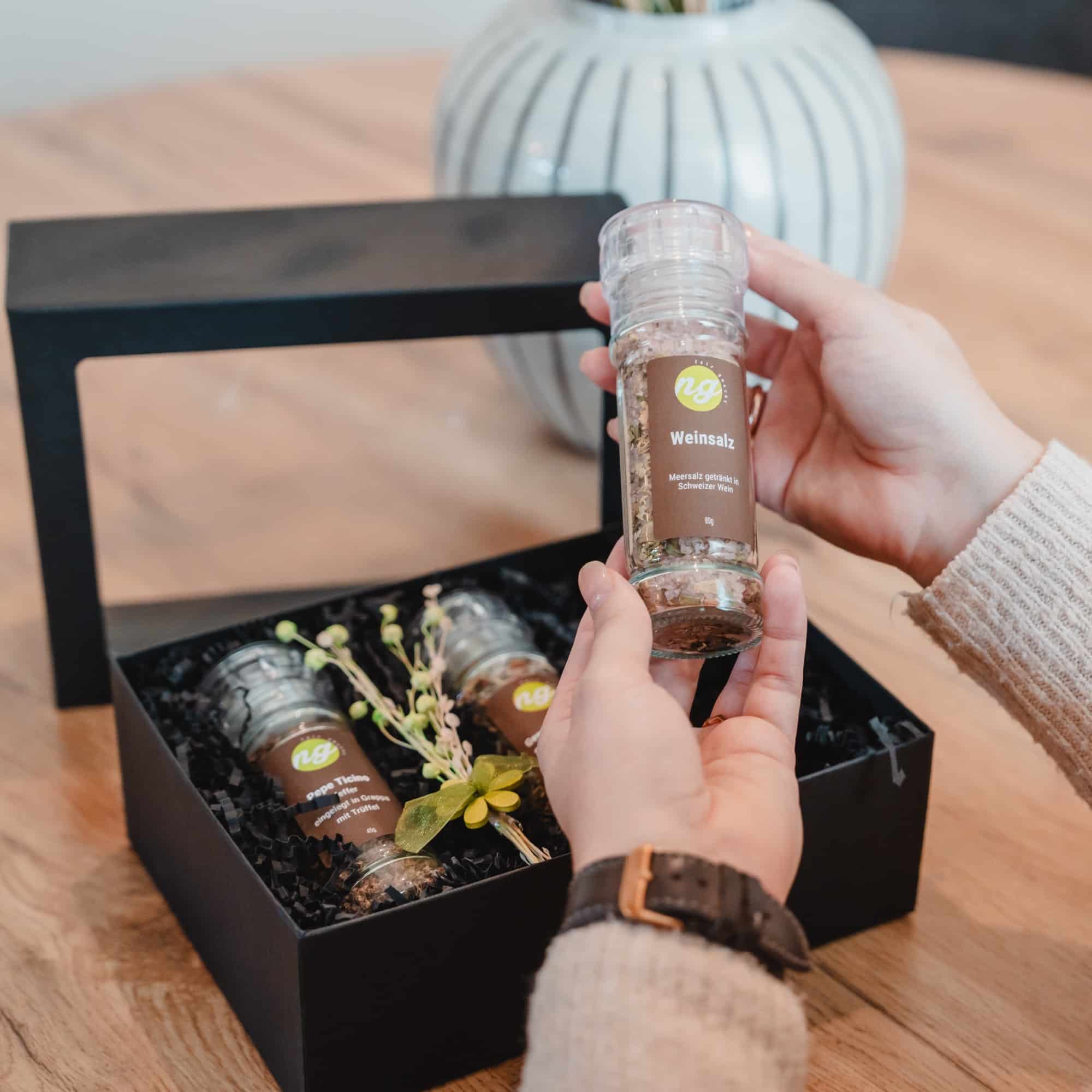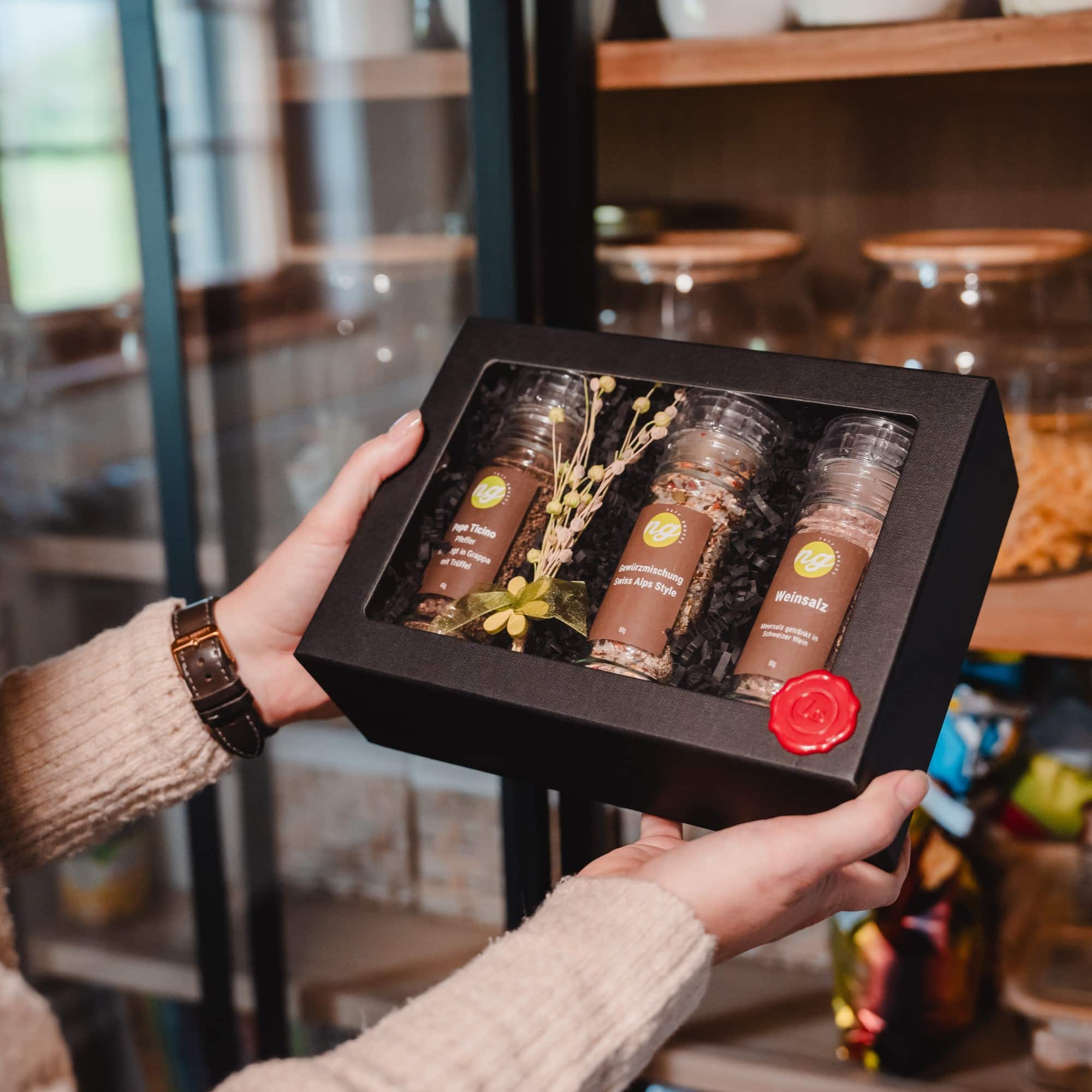 3 exklusive Gourmet Gewürzmischungen, verpackt in einer praktischen Geschenkbox mit Einlage.