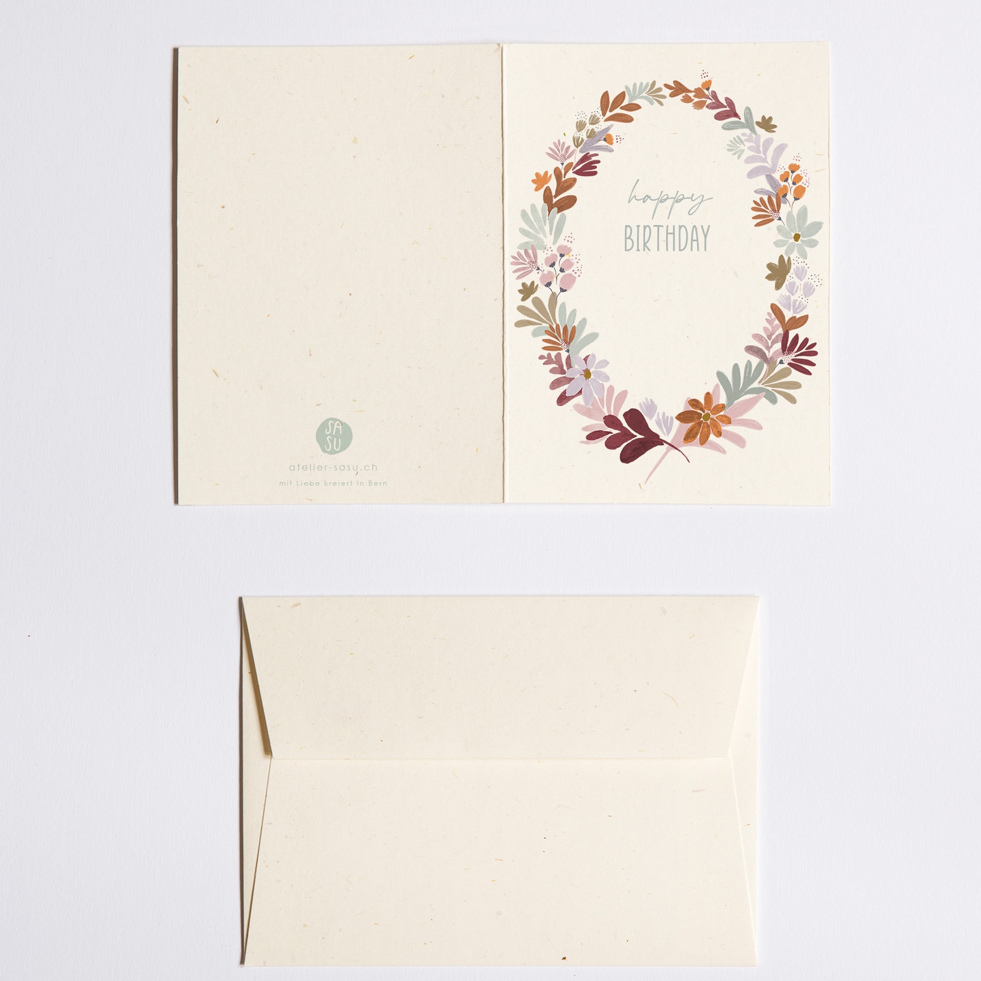 Strohpapier mit Recyclinganteil 320 g/m², konsequent ökologisch gedruckt in einem Berner Familienbetrieb.