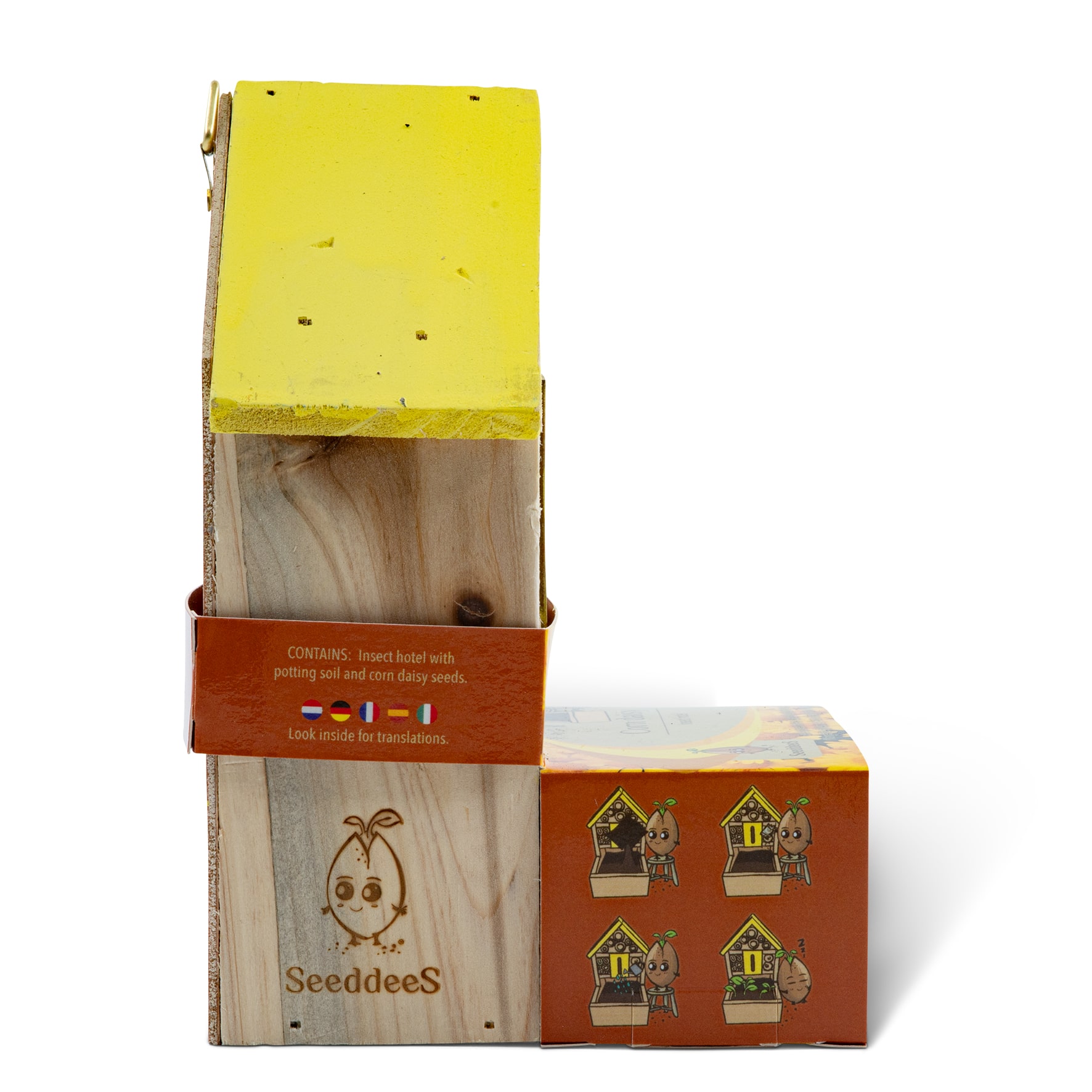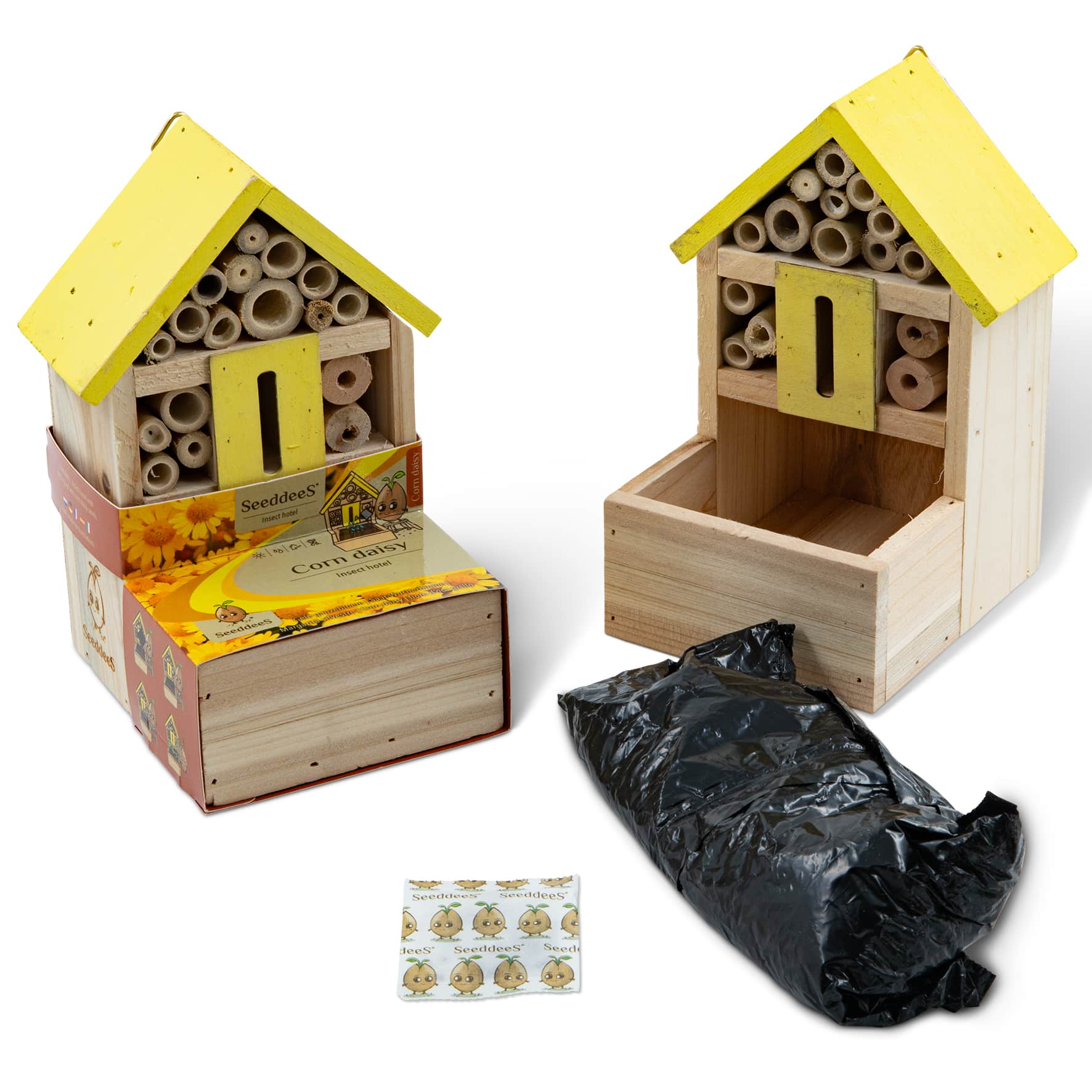 ENTHÄLT: Insektenhotel mit Blumenerde und Saat-Wucherblume-Samen.