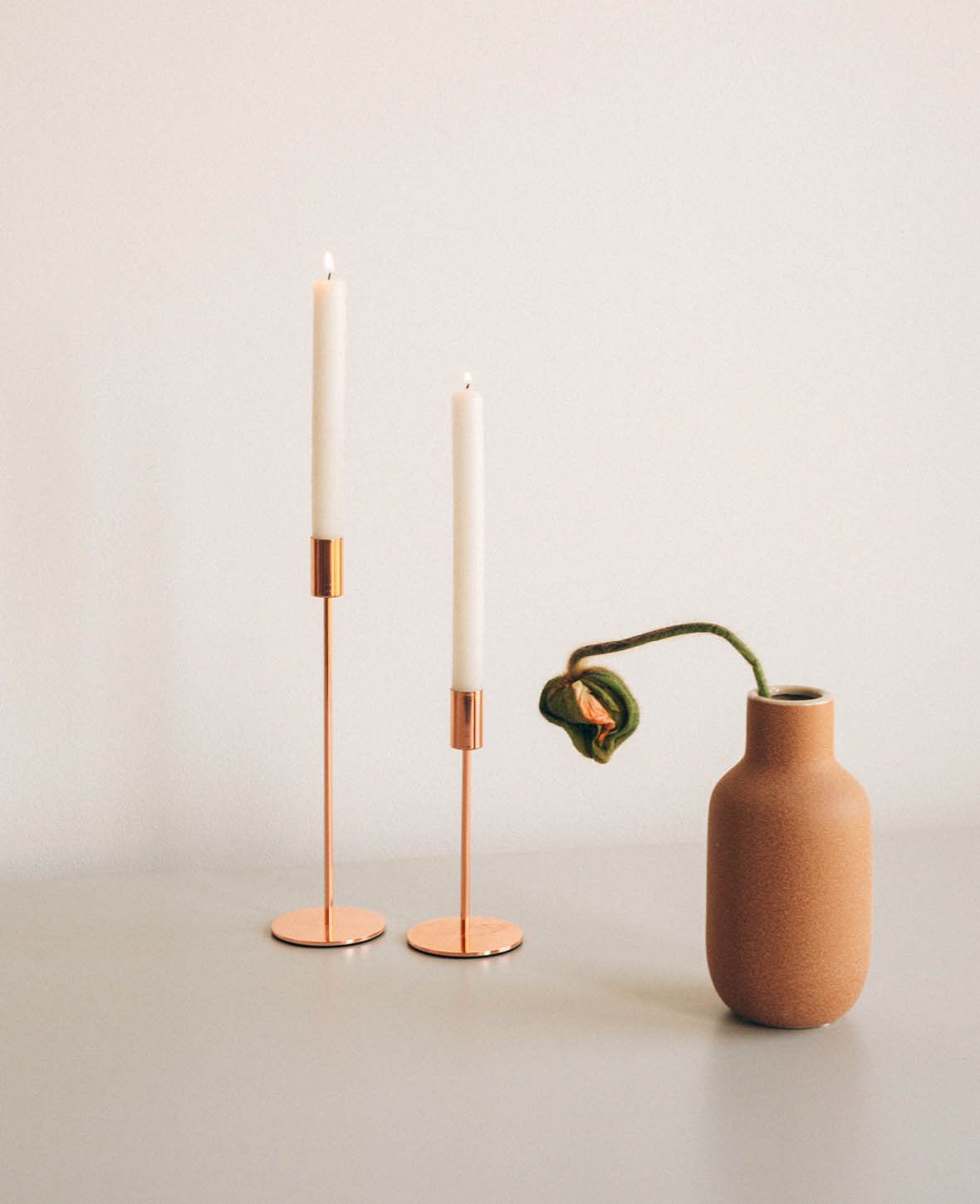 Kerzenständer für Stabkerzen in Kupfer / Roségold, 17.5 cm
