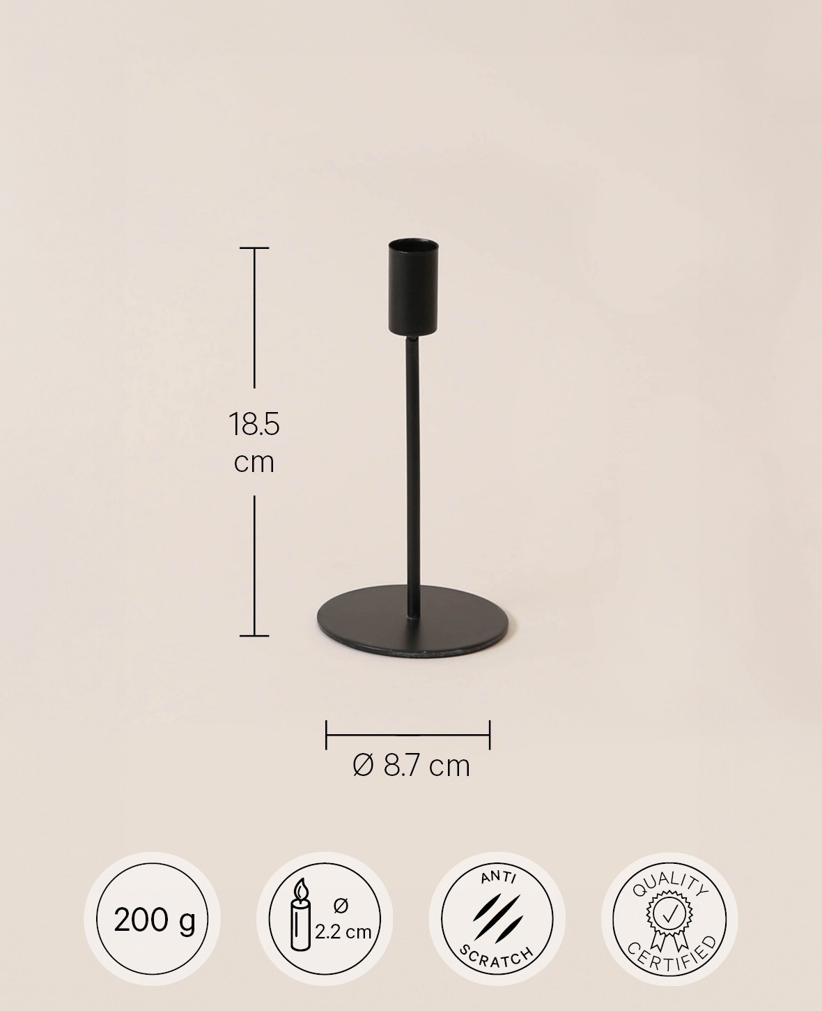Kerzenständer für Stabkerzen in mattem Schwarz, 18.5 cm
