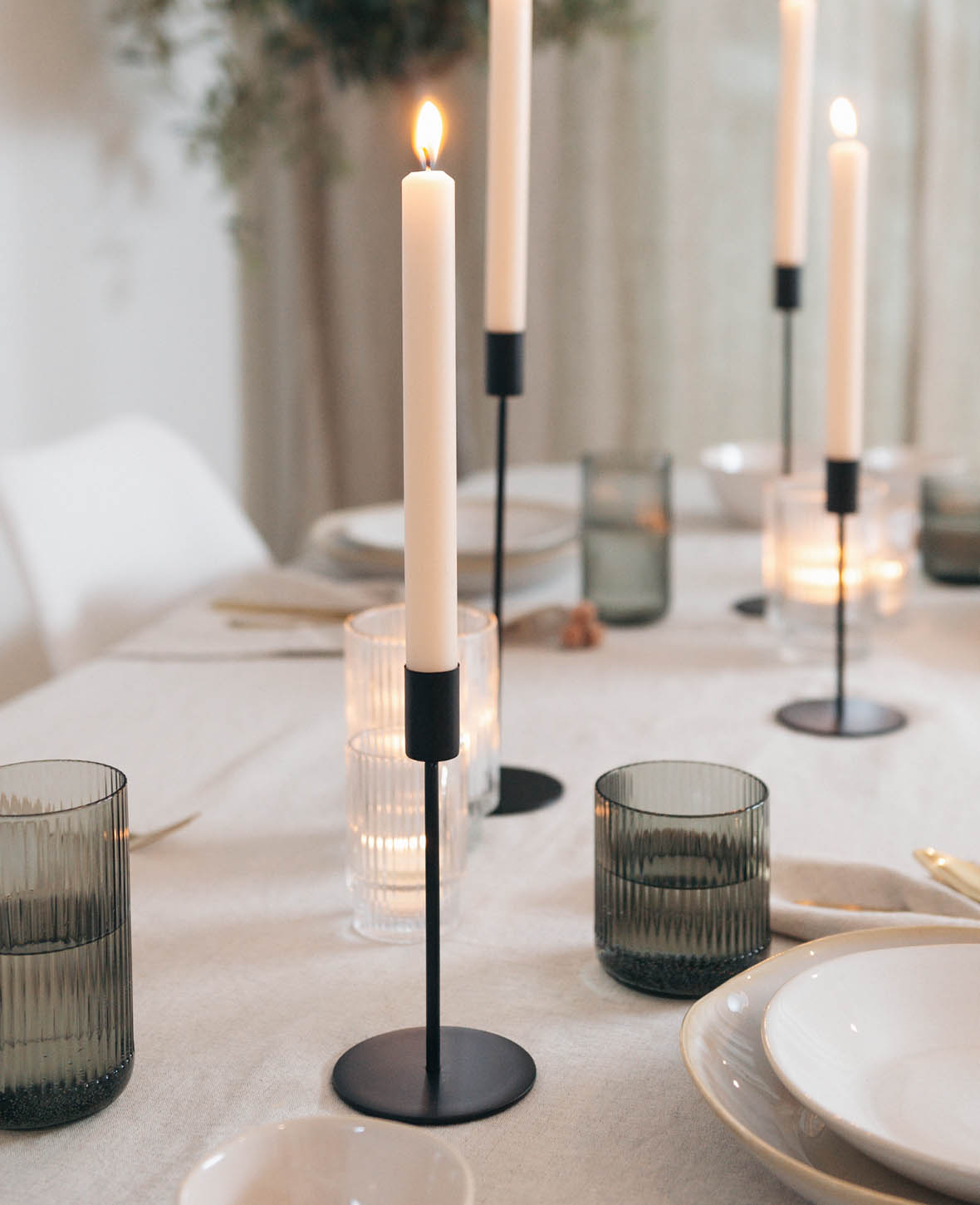 • Metall-Kerzenständer für Stab- und Spitzkerzen mit einem eleganten matten schwarzen Finish