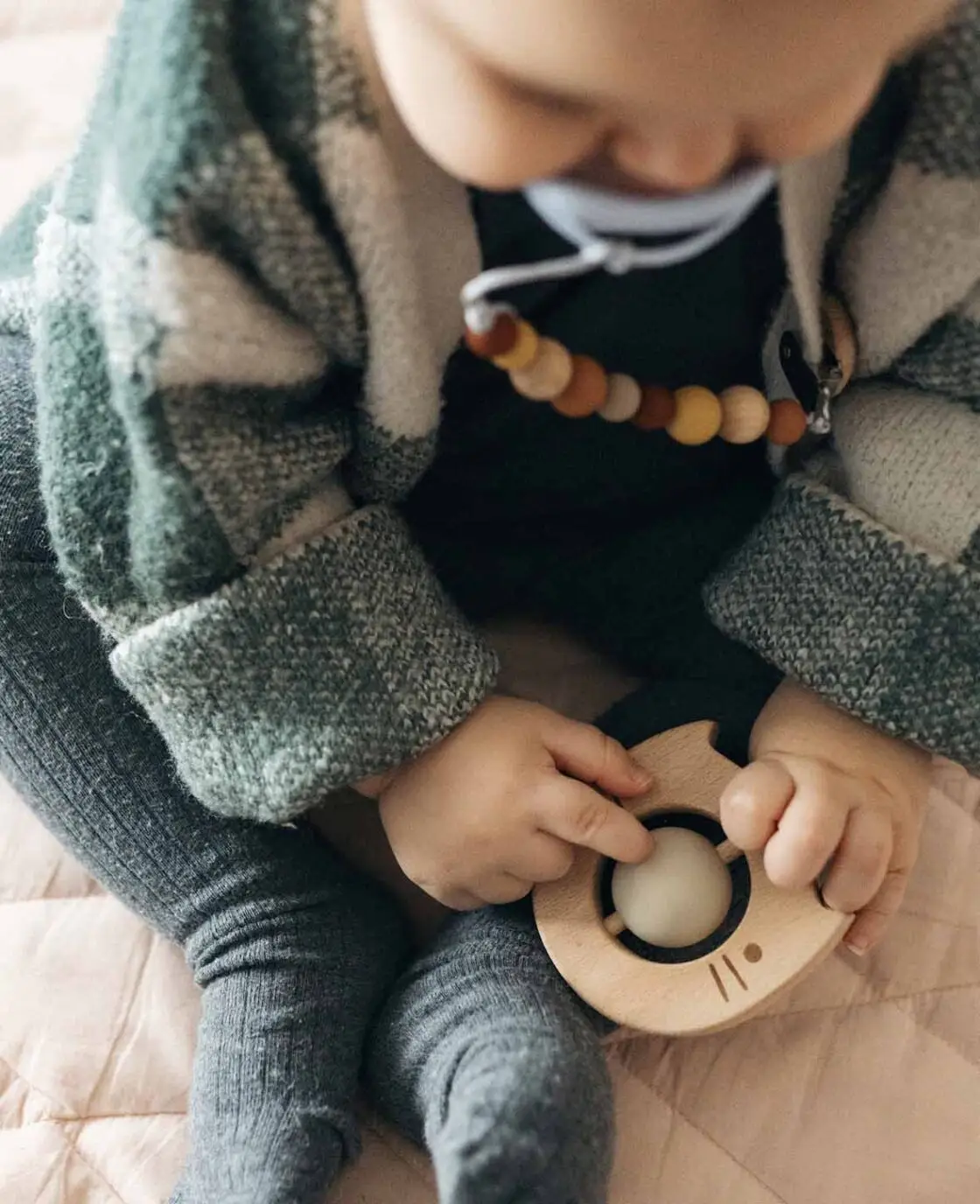 Dieser Beissring in süsser Katzenform ist der perfekte Begleiter in der Zahnwachstumsphase von Babys und Kleinkindern. Die angenehm harte und glatte Buchenholz Oberfläche sorgt für einen festen Griff und Biss, während der Silikonball eine weichere Alternative für wundes Zahnfleisch beim Zahnen bietet.