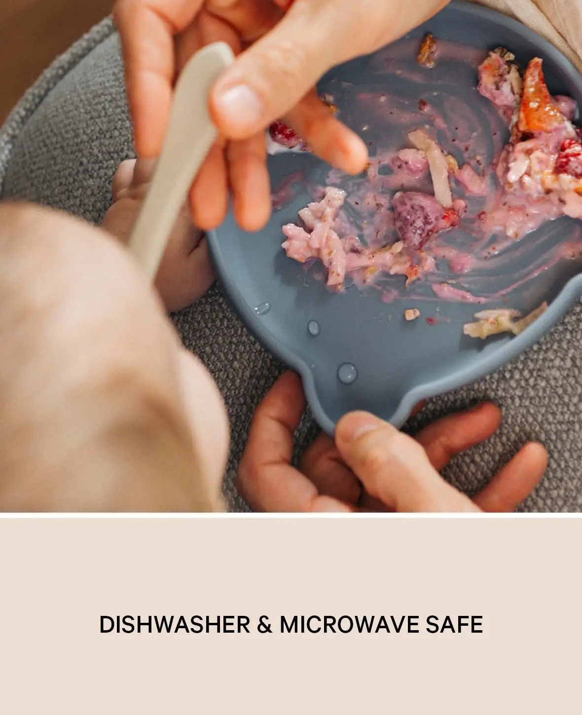 • Der praktischer Saugnapf sorgt für Halt auf glatten Tischflächen