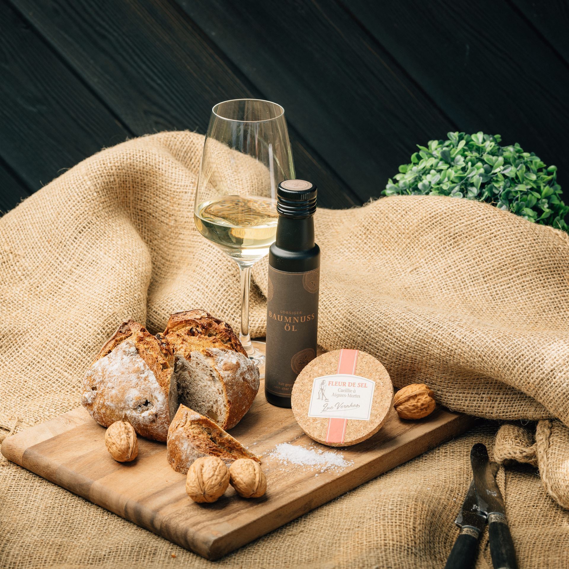 Traditionell gepresstes Öl aus Lobsiger Baumnüssen. Perfekt zum Apero mit knusprigem Brot und etwas Fleur de Sel.