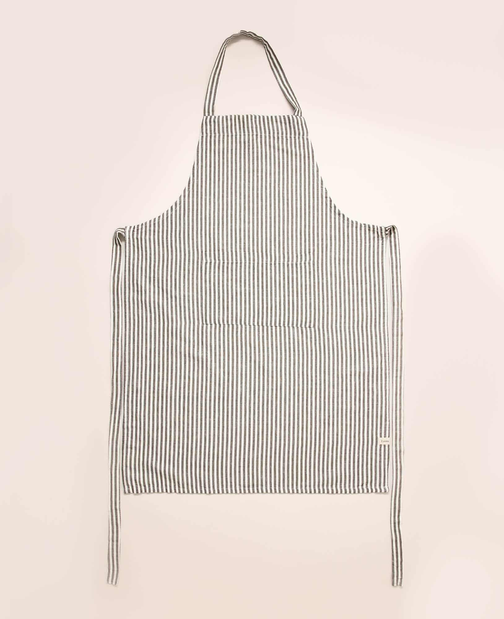 Kochschürze “Louis” aus grau-weiss gestreiftem Baumwoll-Leinenmix