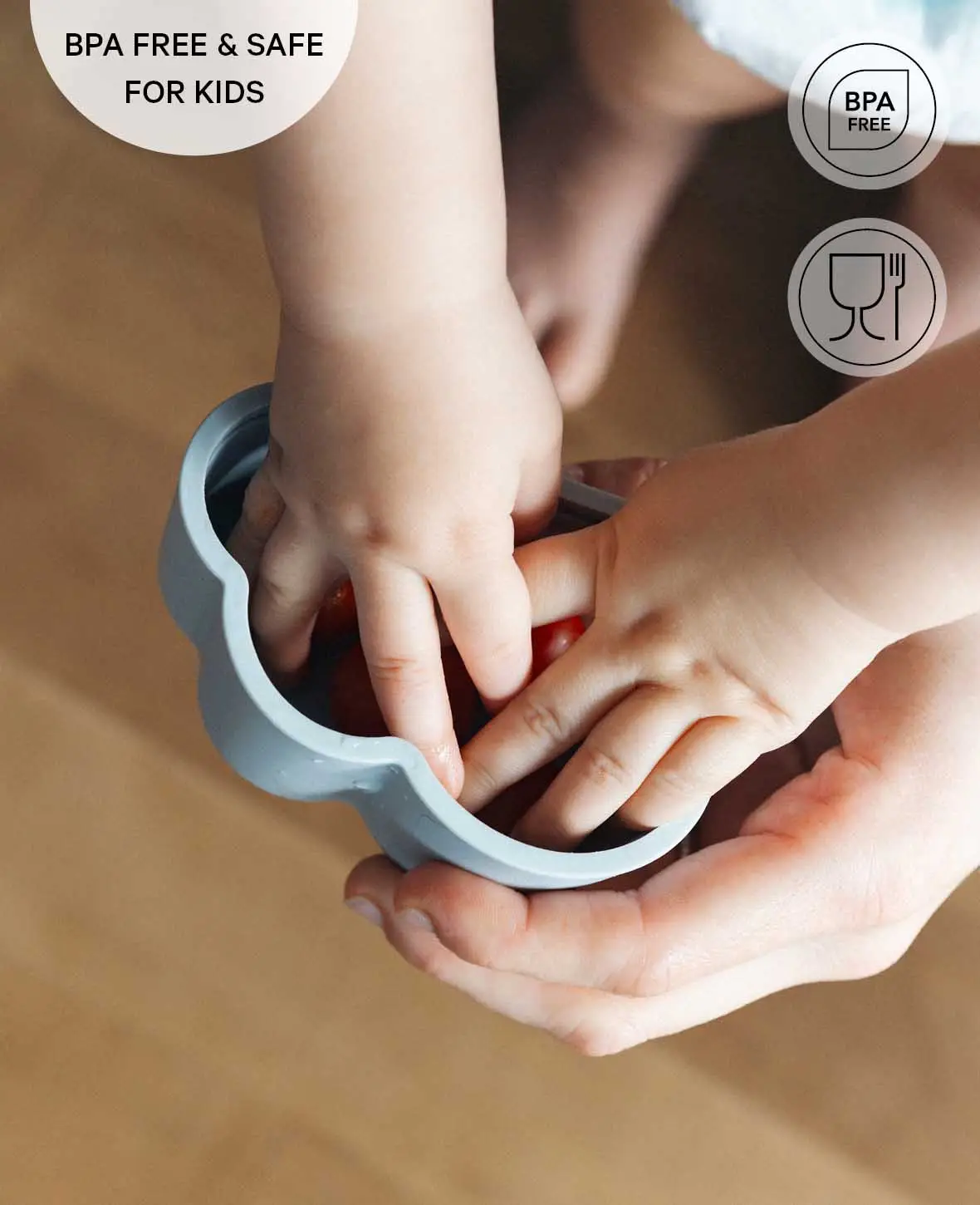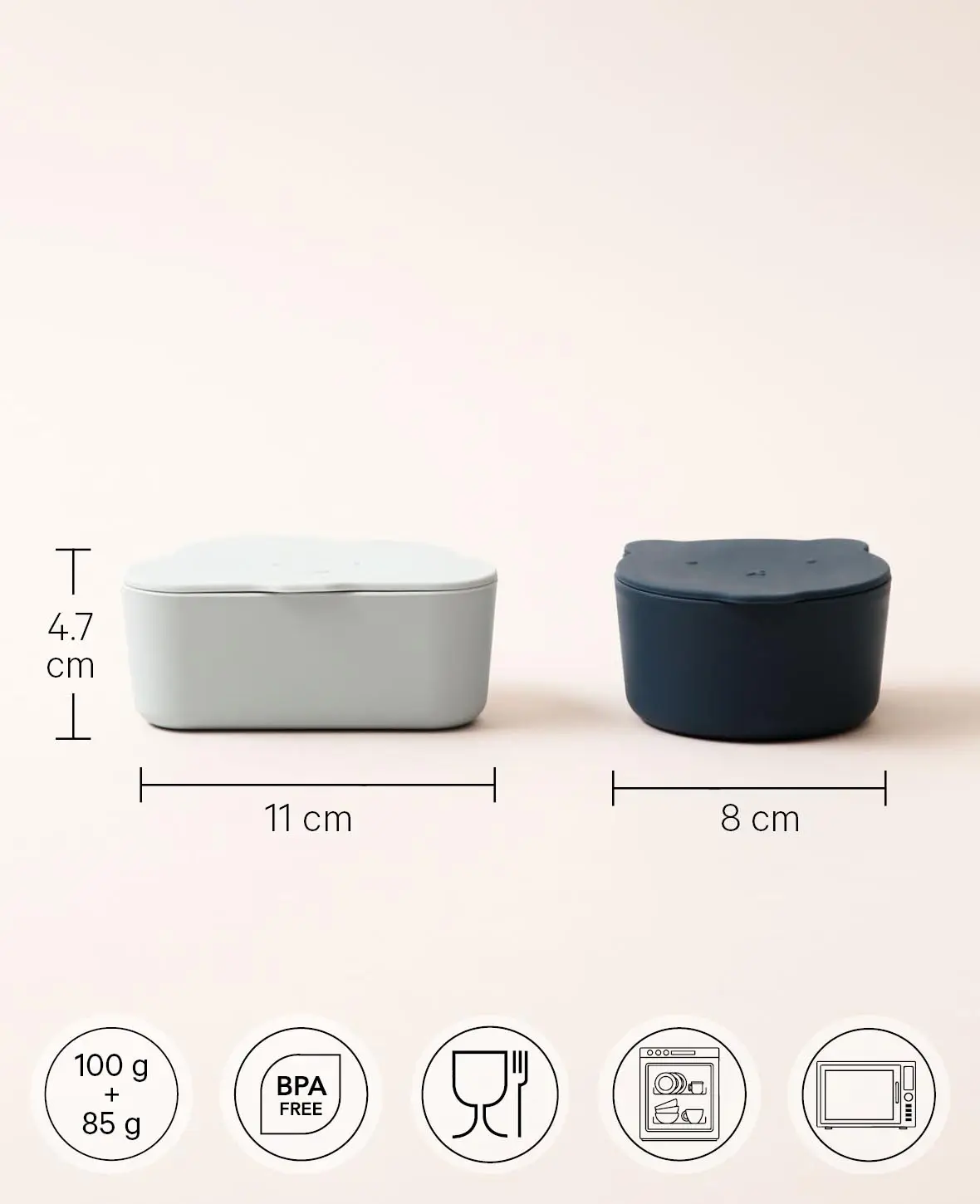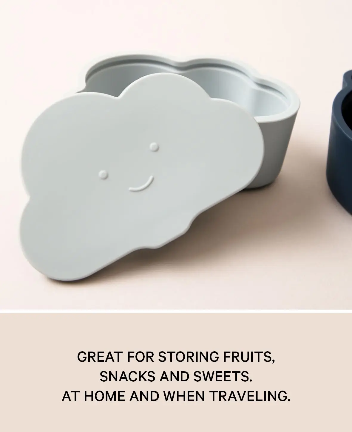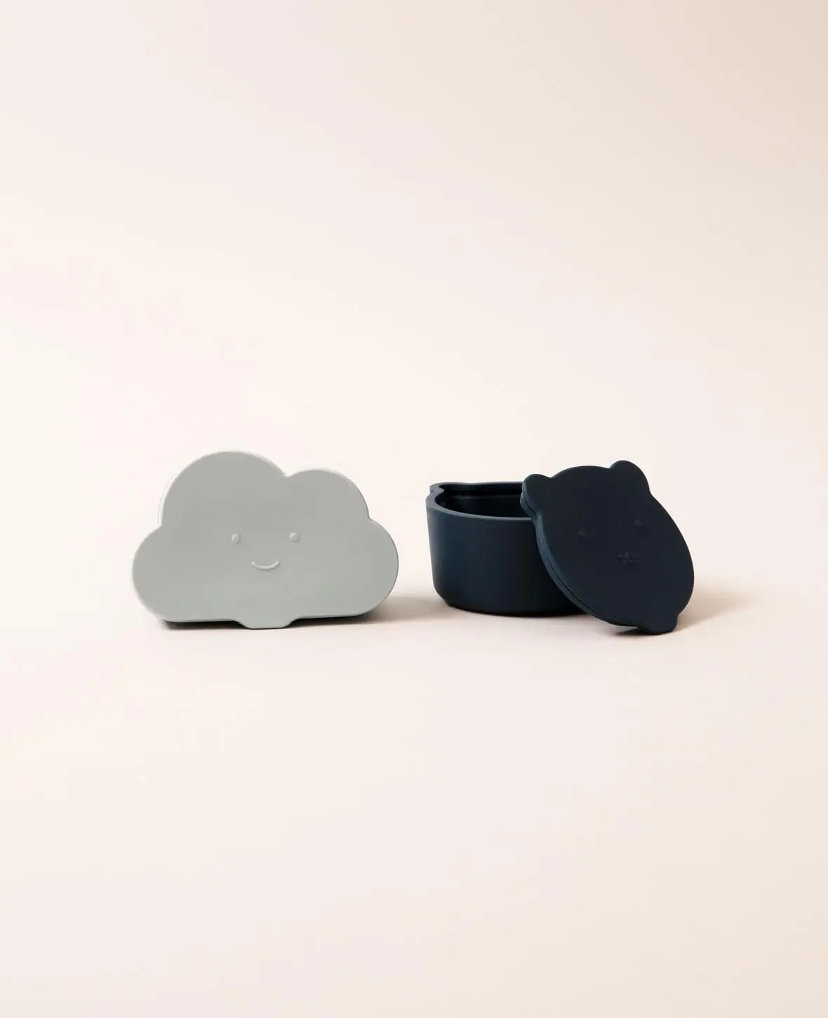 Kinder Lunchbox Set / Snackbox / Aufbewahrungsdosen in Wolken und Bärenform, aus Silikon in Hellblau / Dunkelblau