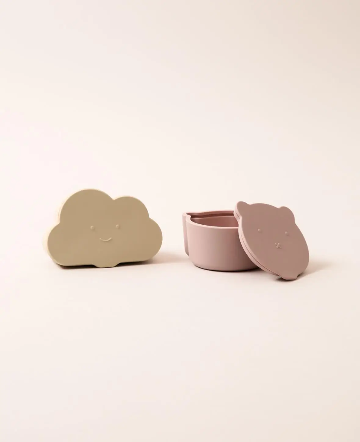 Kinder Lunchbox Set / Snackbox / Aufbewahrungsdosen in Wolken und Bärenform, aus Silikon in Rosa / Beige