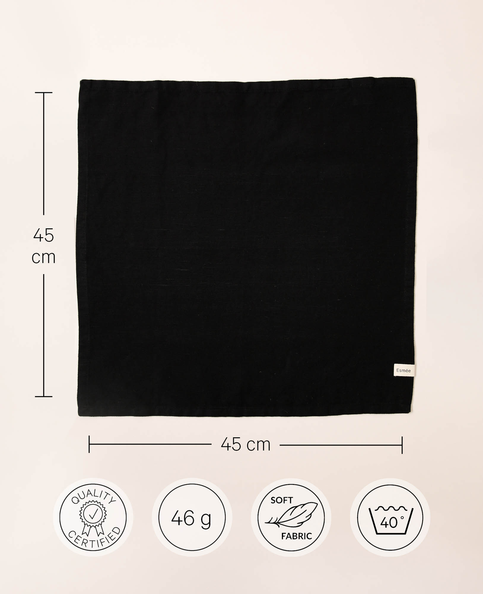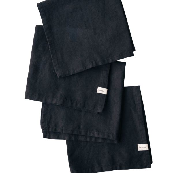 Stoffserviette “Mani” aus schwarzem Baumwoll-Leinenmix, 45 cm x 45 cm
