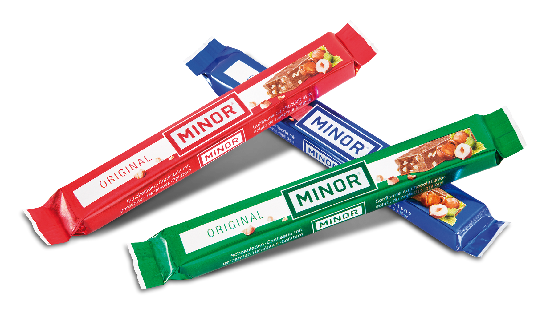Minor Original – der beliebte Schweizer Schokoladen-Stängel mit gerösteten Haselnuss-Splittern im Megapack. Lasse Dich Biss für Biss verführen.