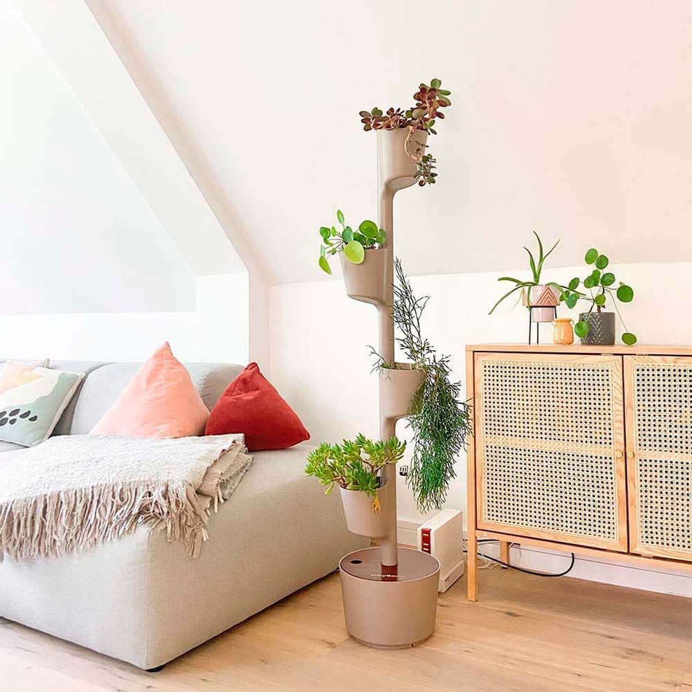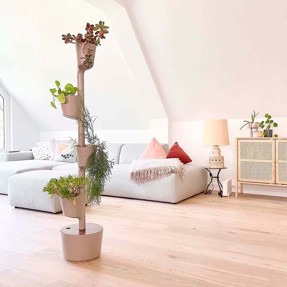 – Pflanzgefäss im vertikalen Design. Erhältlich in zwei Grössen: 3 oder 4 Töpfe; und vier Farben: Grau, Kiefernrinde, Schwarz oder Weiss.