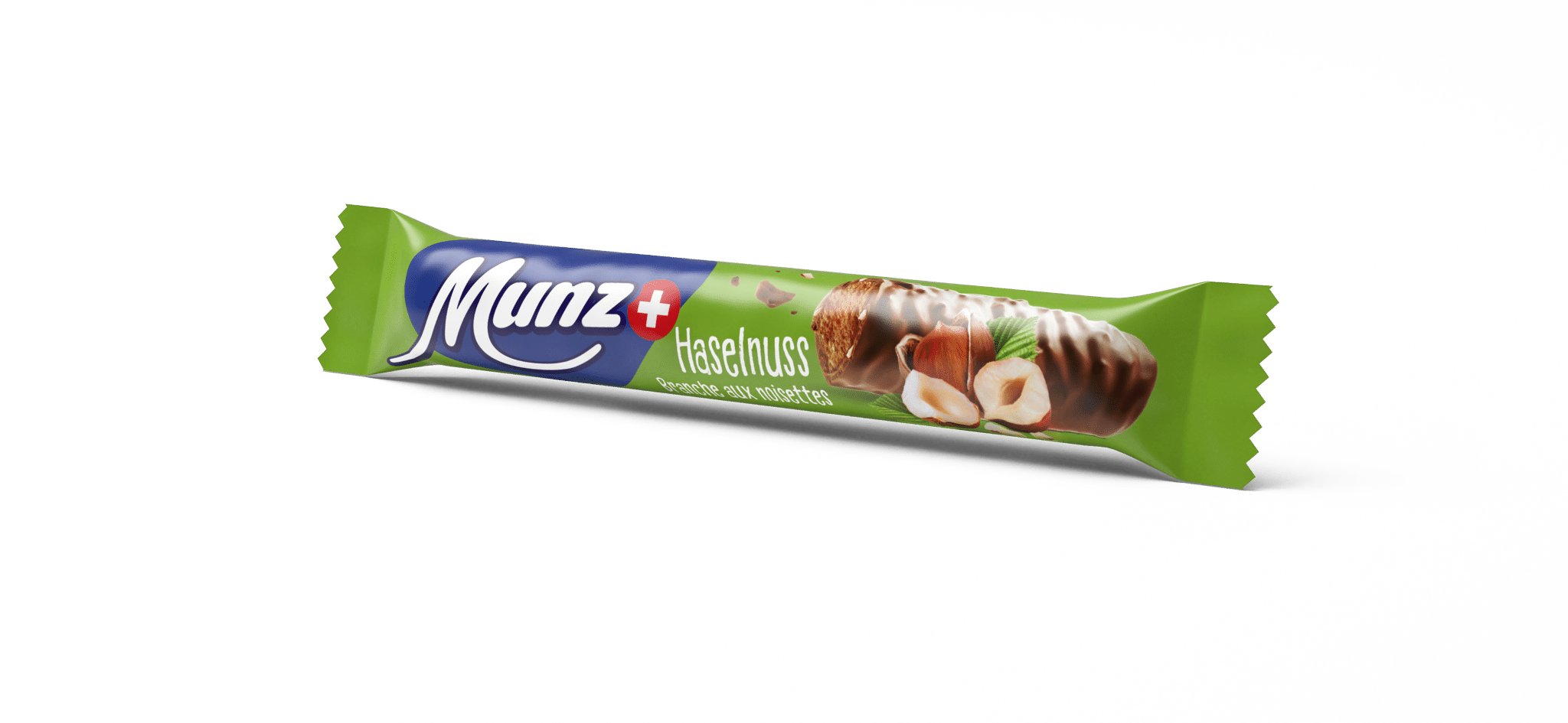 Das feine Munz Haselnuss Prügeli begeistert mit seinem besonders intensiven haselnussigen Geschmack und differenziert sich daher deutlich von anderen Munz Prügeli. Es hat in der Nuss-Schokolade den höchsten Nussanteil mit rund 21%. Der besonders spürbare intensive Nussgeschmack kommt durch die intensiv und trotzdem schonend gerösteten Haselnusssplitter – vor allem aus Italien. Sie sind sowohl in der Pralinéfüllung als auch im Überzug der Munz-Schokolade und das Prügeli wird mit den Haselnuss-Splittern zusätzlich bestreut.