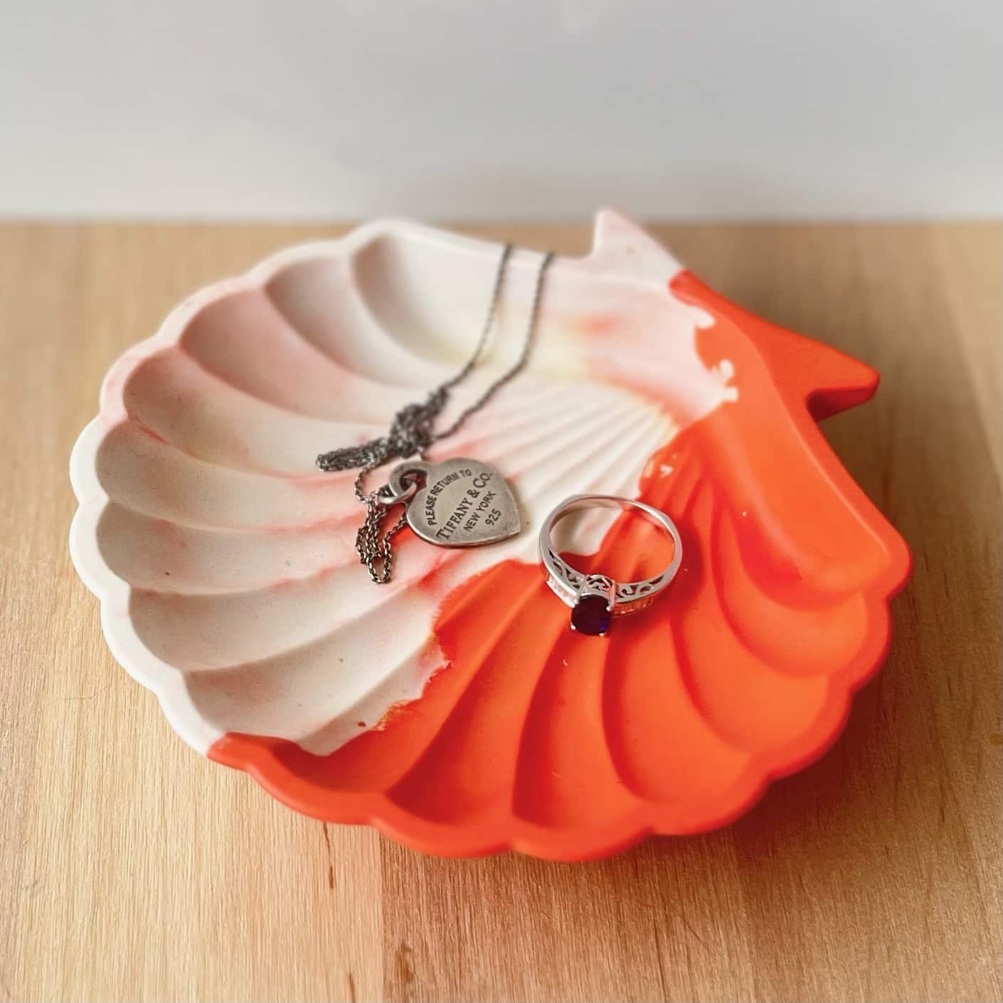 Verleihe Deinem Zuhause einen Hauch von Eleganz und organisiere Deine Schmuckstücke stilvoll mit dieser wunderschönen Jesmonite-Muschel.