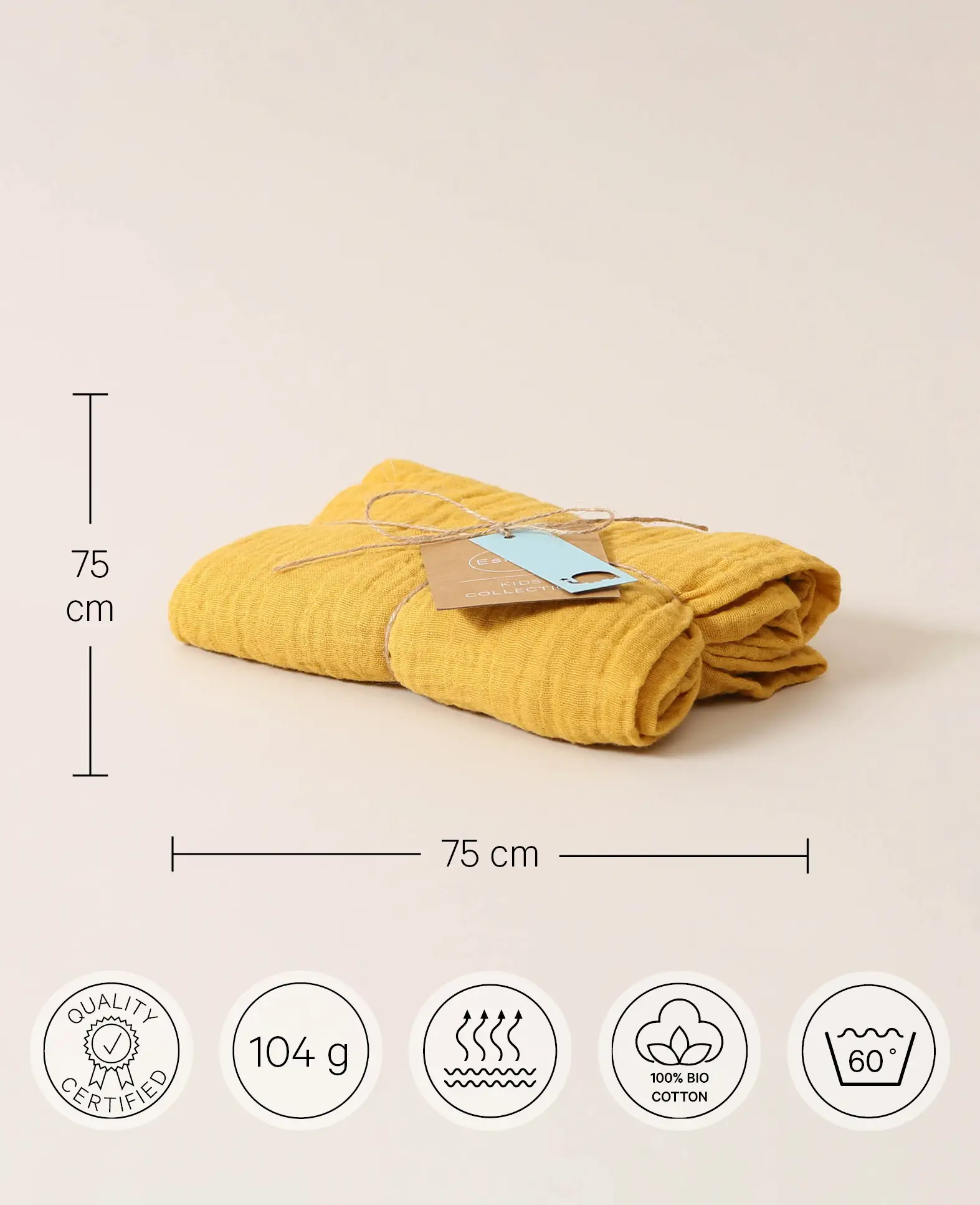 Musselin Tuch / Mulltuch aus 100% Bio Baumwolle als Nuscheli für Babys oder als Mode- und Dekoaccessoire in Senfgelb, 75 x 75 cm
