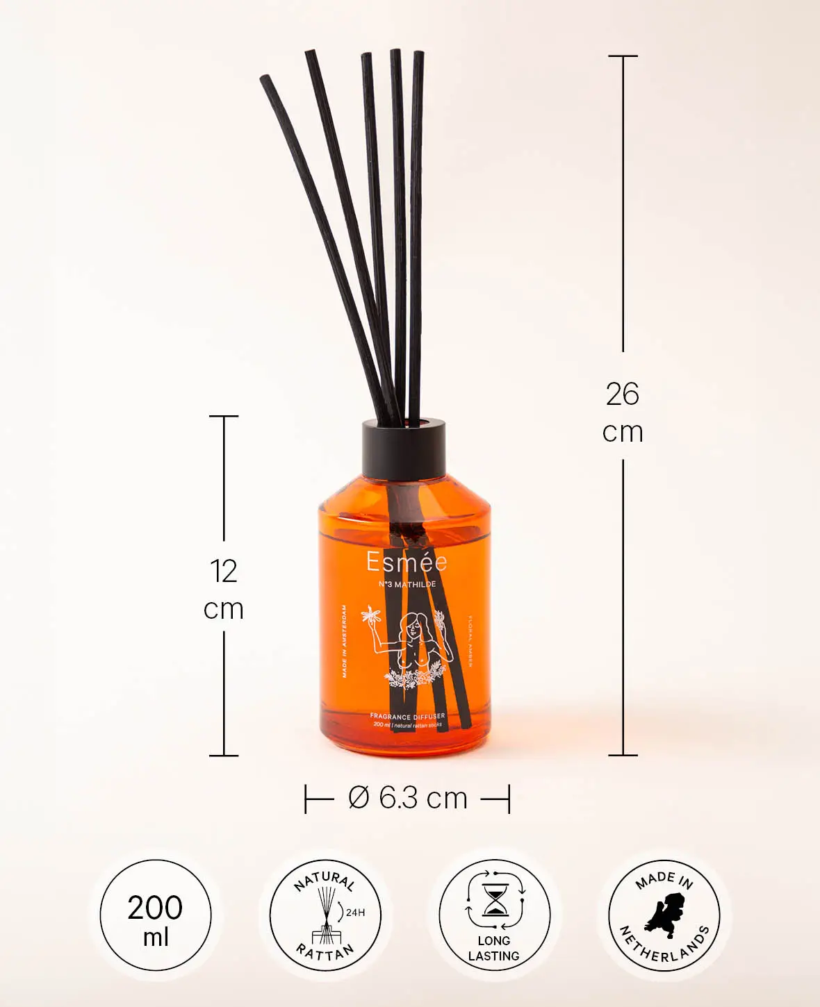 Esmée Premium Scents – N°3 Mathilde, Diffusor mit Duftnote “Floral Amber”, 200 ml, Orange