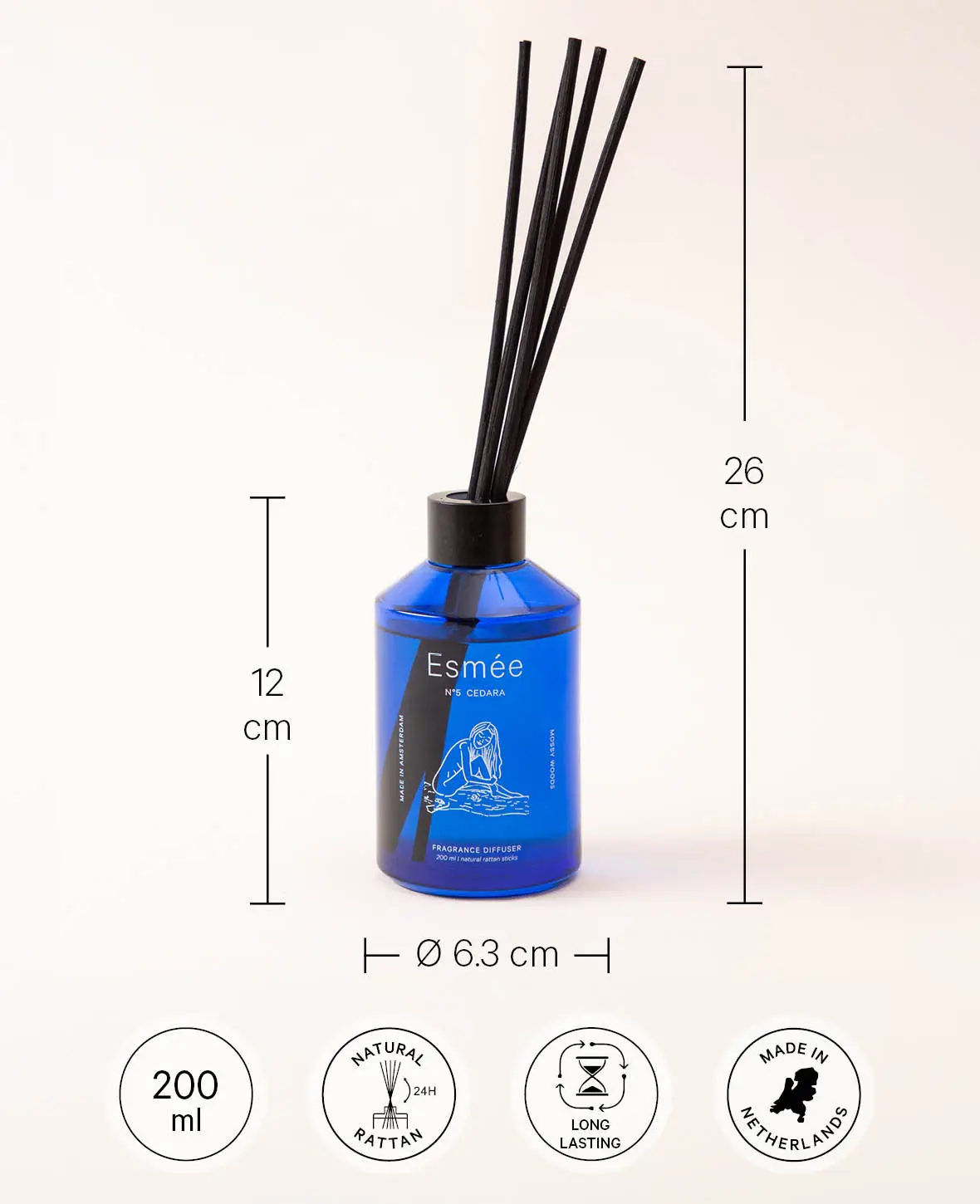 Esmée Premium Scents – N°5 Cedara, Diffusor mit Duftnote “Mossy Woods”, 200 ml, Blau